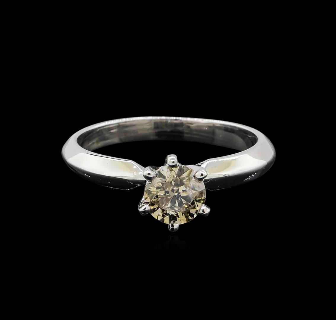 One electronically tested 14KT white gold ladies cast diamond solitaire ring with a knife edge shank with a bright polish finish. Identified with markings of "14K". Condition is new. Containing: One prong set round brilliant cut diamond, measuring 5.60 - 5.60 x 3.36mm (depth est.) exact weight 0.70 ct. Clarity: I-1, Cut is Good. Diamonds are graded in the mounting, unless otherwise stated. Total Weight of Diamonds 0.70 ct. Total Weight of Solitaire Ring 3.00 grams. GGL Appraised.