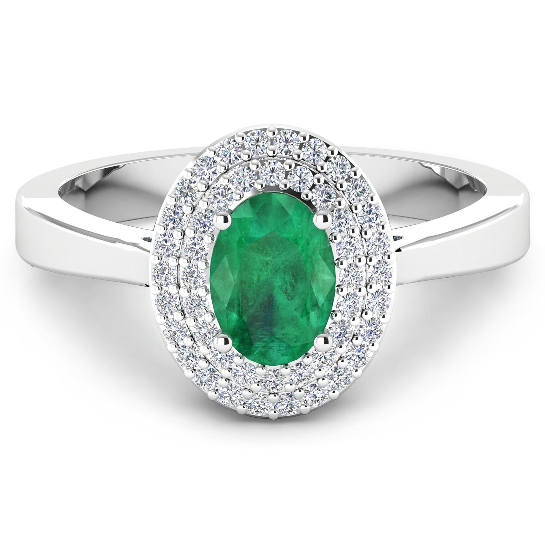 14KT White Gold 0.70ct Zambian Emerald and Diamond Ring