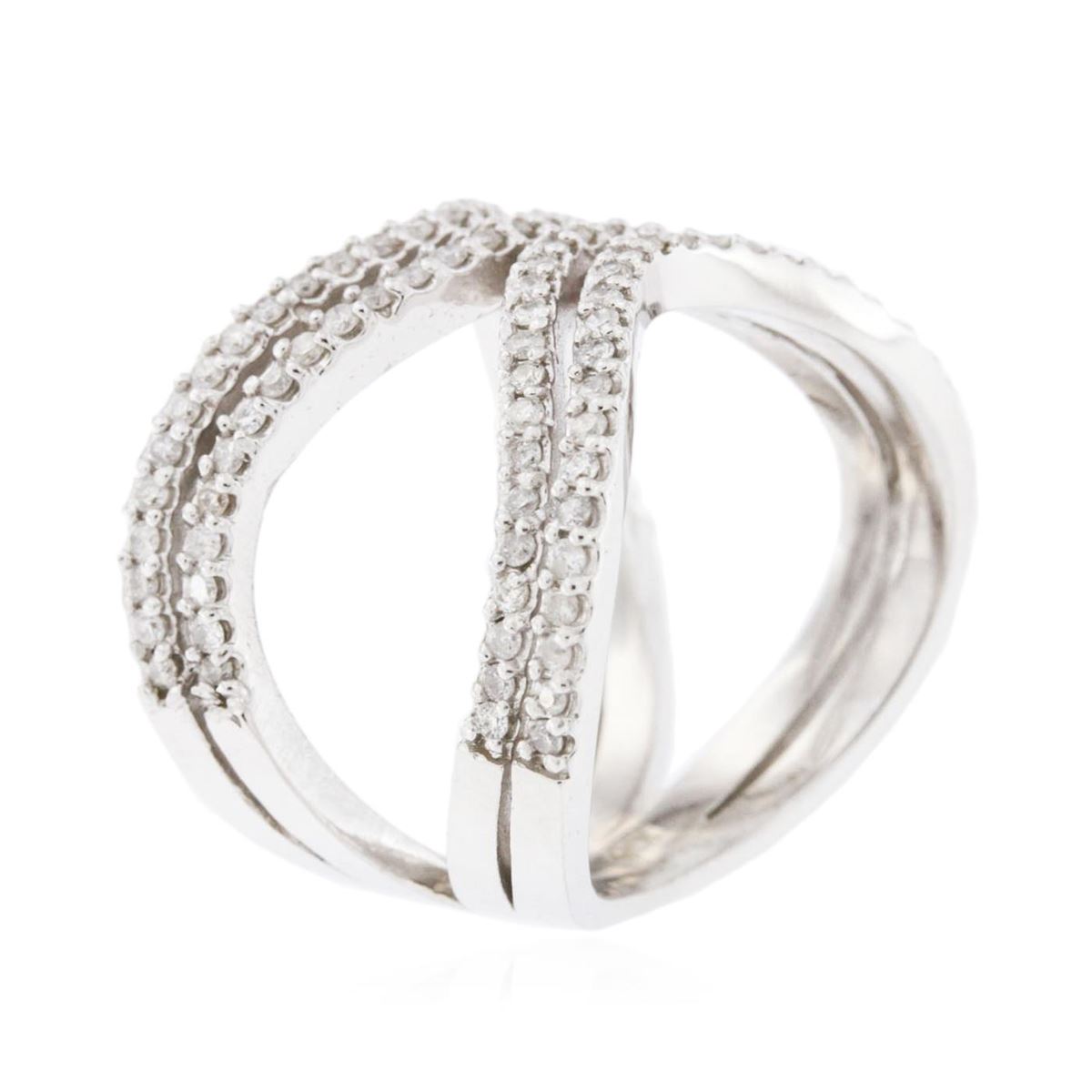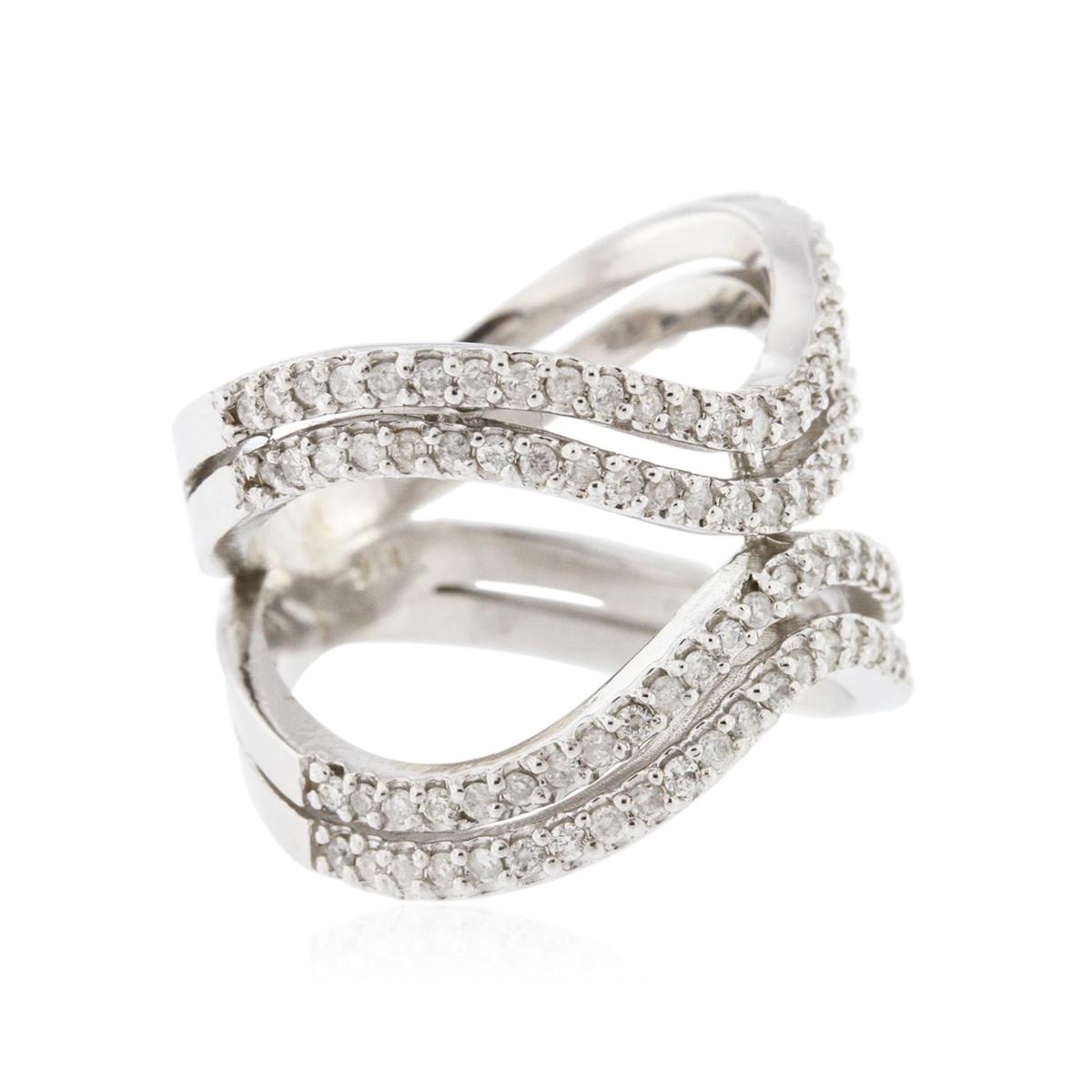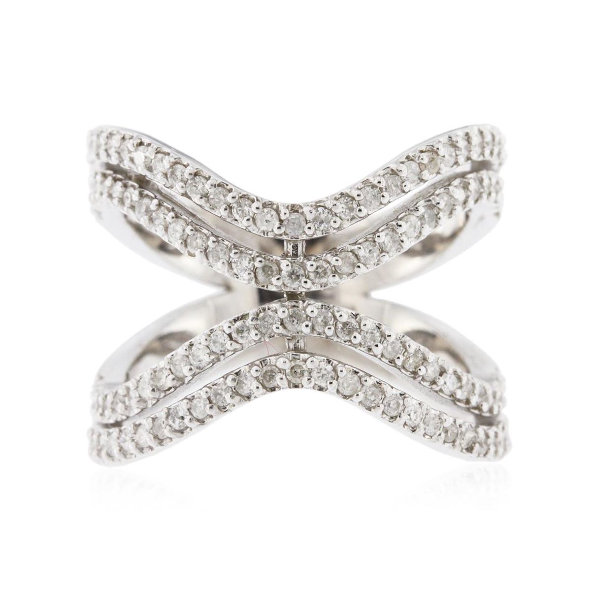 One electronically tested 14KT white gold ladies cast diamond ring with a bright polish finish. Identified with markings of "14K". Condition is new. Containing: One Hundred Twelve bead set round brilliant cut diamonds, measuring 1.20 - 1.20 x 0.72mm (depth est.) approximate total weight of 112 Stones = 0.71ct. Clarity: I-1 to I-2. Color: I - J. All diamonds are graded in the mounting, unless otherwise stated. Total Weight of Diamonds 0.71ct. Total Weight of Ring 8.10 grams. GGL Appraised at $3,190.00.