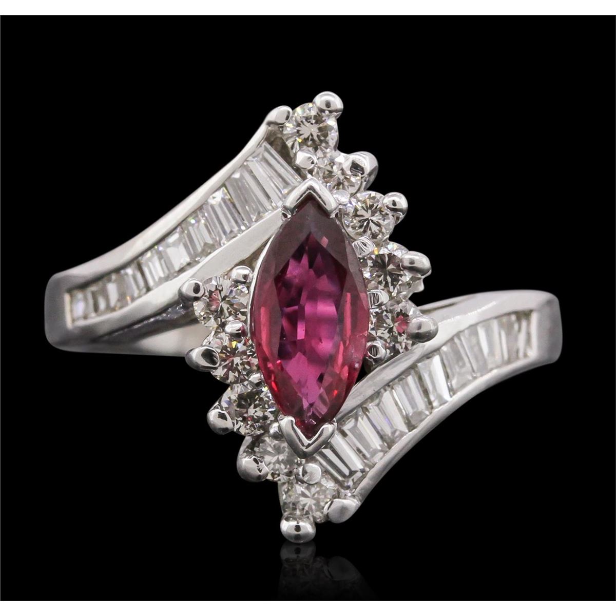 One ring featuring: 14KT white gold with a total weight of 4.90 grams, ruby with a total weight of 0.71ct, and diamonds with a total weight of 0.75ctw.