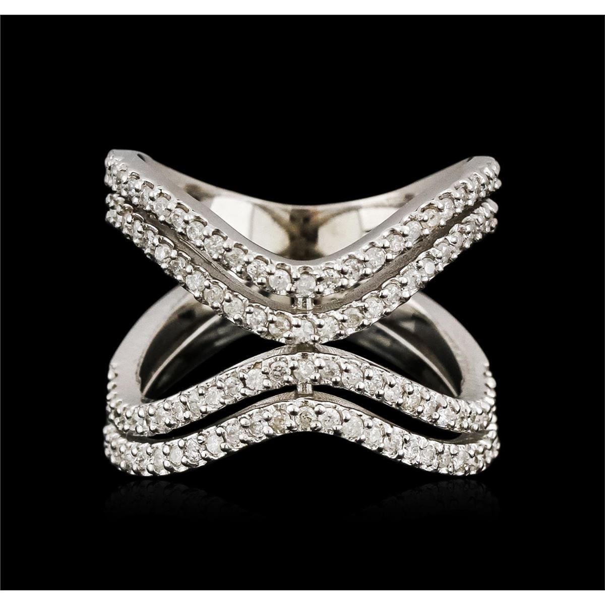 One electronically tested 14KT white gold ladies cast diamond ring with a bright polish finish. Identified with markings of "14K". Condition is new. Containing: One Hundred Twelve bead set round brilliant cut diamonds, measuring 1.20 - 1.20 x 0.72mm (depth est.) approximate total weight of 112 Stones = 0.71ct. Clarity: I-1 to I-2. Color: I - J. All diamonds are graded in the mounting, unless otherwise stated. Total Weight of Diamonds 0.71ct. Total Weight of Ring 8.10 grams. GGL Appraised at $3,190.00.