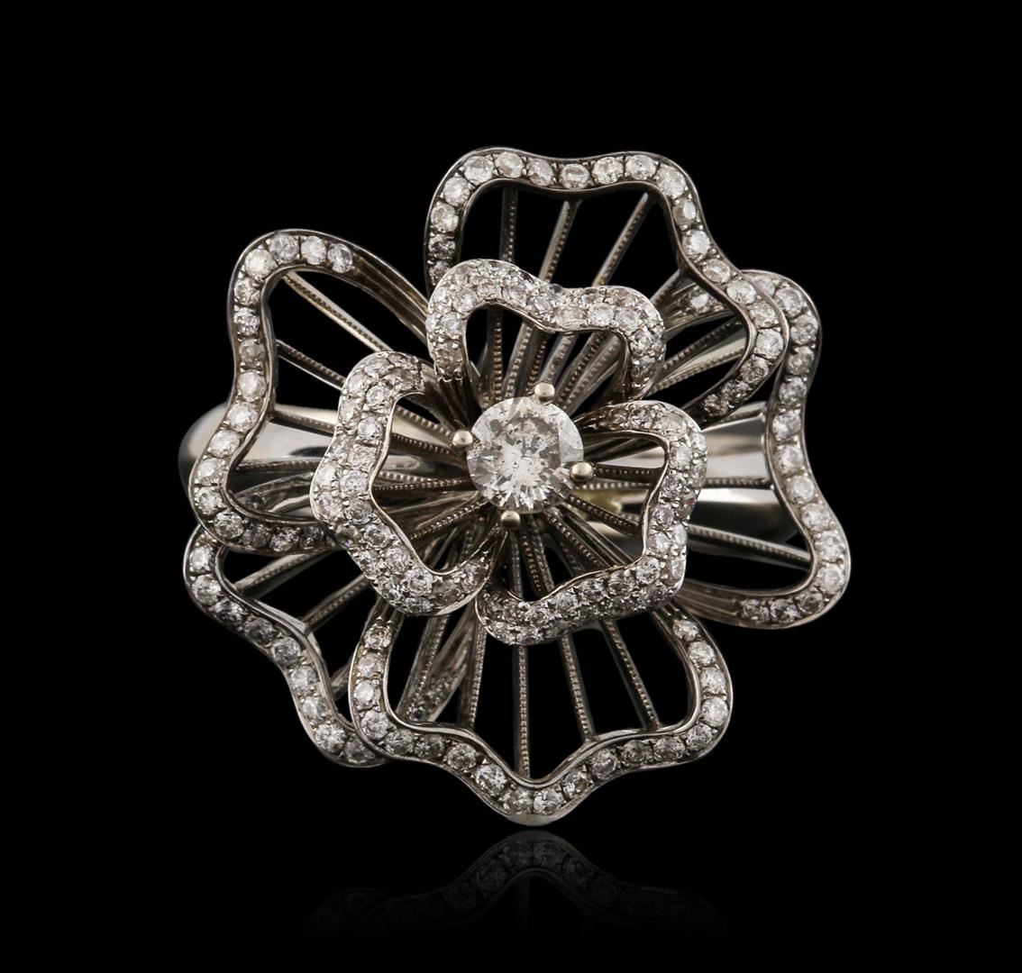 One ring featuring: 14KT white gold weighing 5.80 grams containing pave/prong set round diamonds with a total weight of 0.71ct.