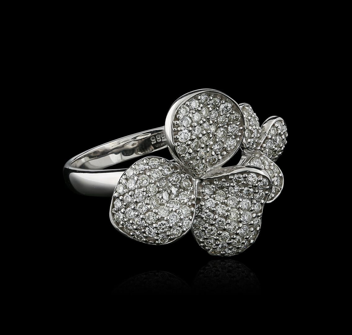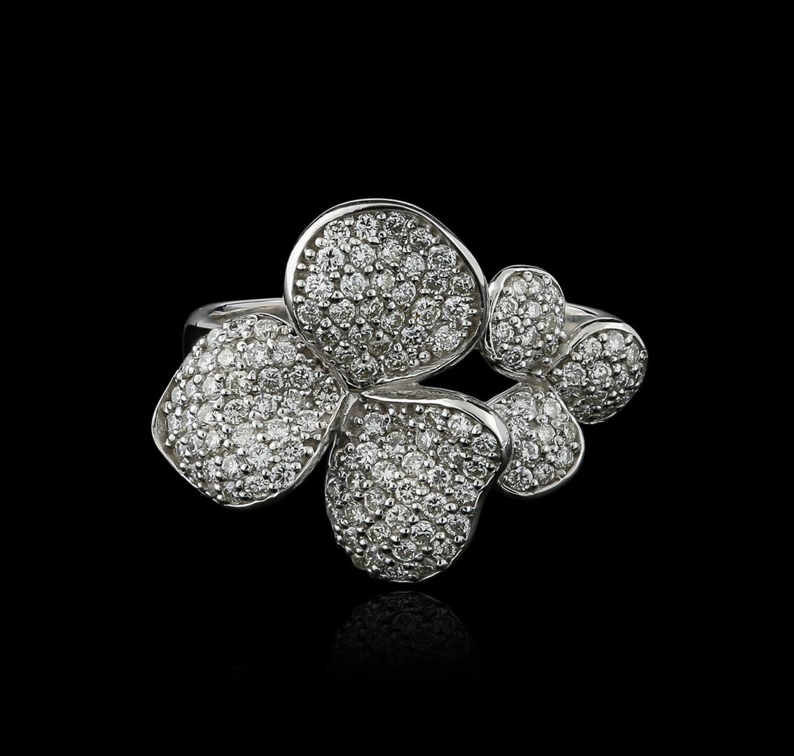 One flower design ring featuring: 14KT white gold weighing 4.60 grams containing diamonds with a total weight of 0.77ct.