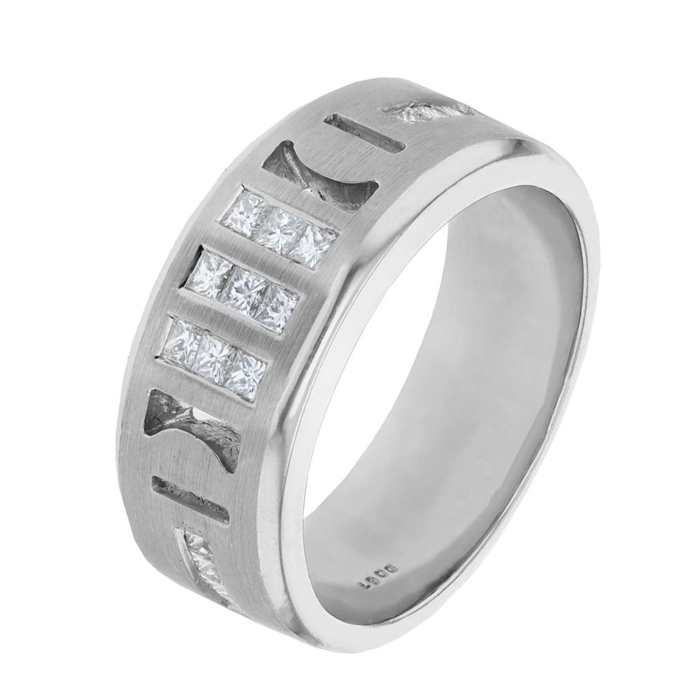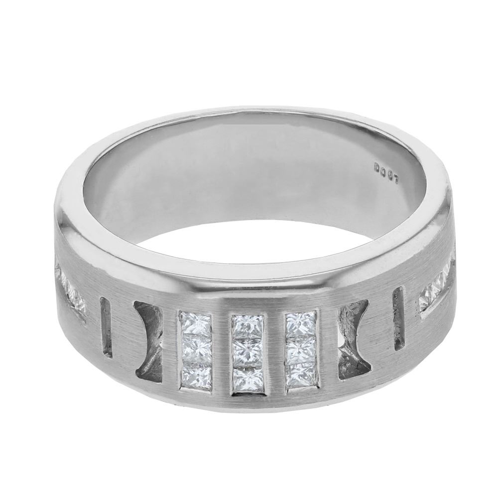 One 14KT White Gold 0.77ctw Diamond Ring. (10) Princess cut Diamonds with a total weight of 0.77cts with a color of I and clarity of I-1. Total weight of this ring is 16.18 grams.