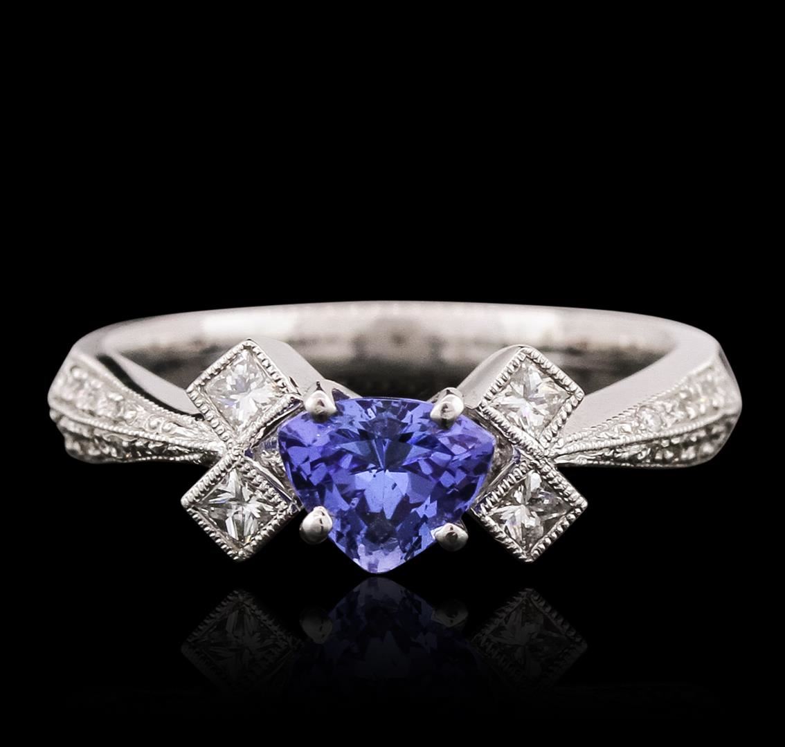 One ring featuring: 14KT white gold weighing 5.45 grams containing one trillion cut tanzanite with a total weight of 0.78ct and diamonds with a total weight of 0.36cts.
