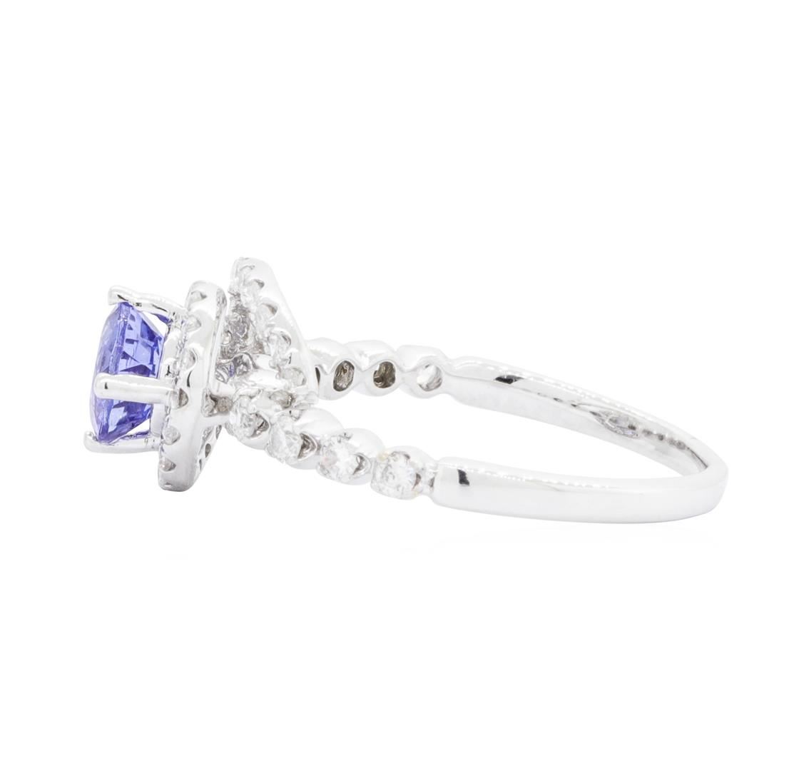 One ring featuring: 14KT white gold weighing 2.9 grams containing one tanzanite weighing 0.78ct and diamonds weighing 0.55ctw. The ring is a size 5.5.