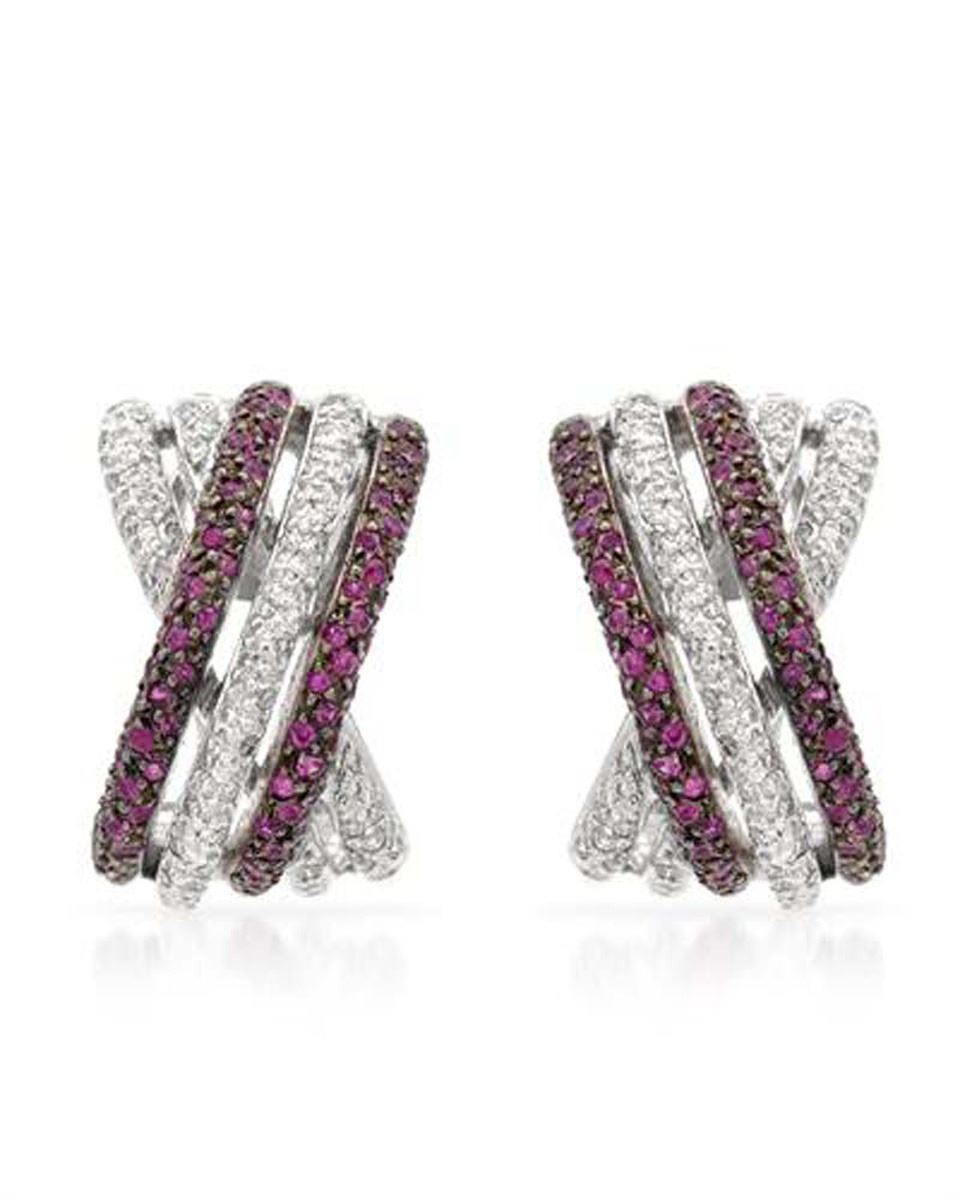 One pair of 14KT White Gold 0.78ctw Ruby and Diamond Earrings. (140) Rubies with a total weight of 0.78cts (92) Diamonds with a total weight of 0.39cts. The total weight of these earrings are 9.47 grams.
