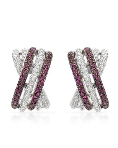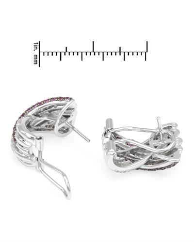 One 14KT White Gold 0.78ctw Ruby and Diamond Earrings. (140) Rubies with a total weight of 0.78cts. (92) Round Diamonds with a total weight of 0.39cts with a color of I and clarity of I-1. Total weight of these earrings are 9.47 grams.
