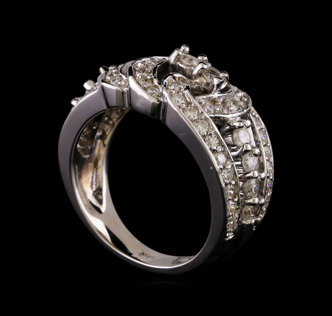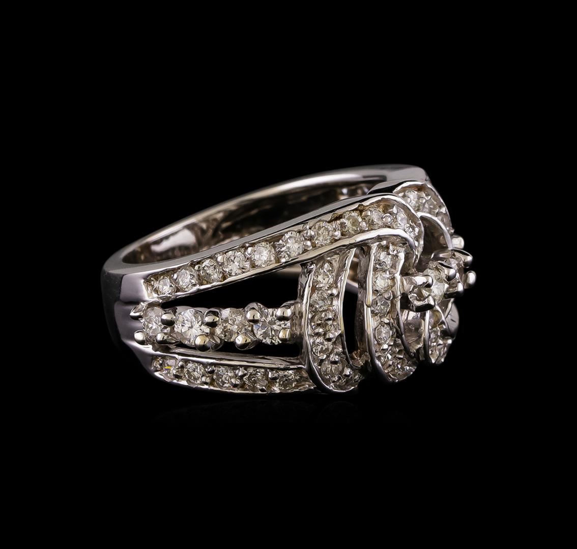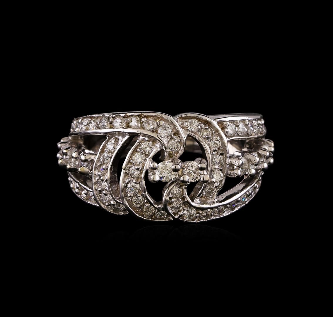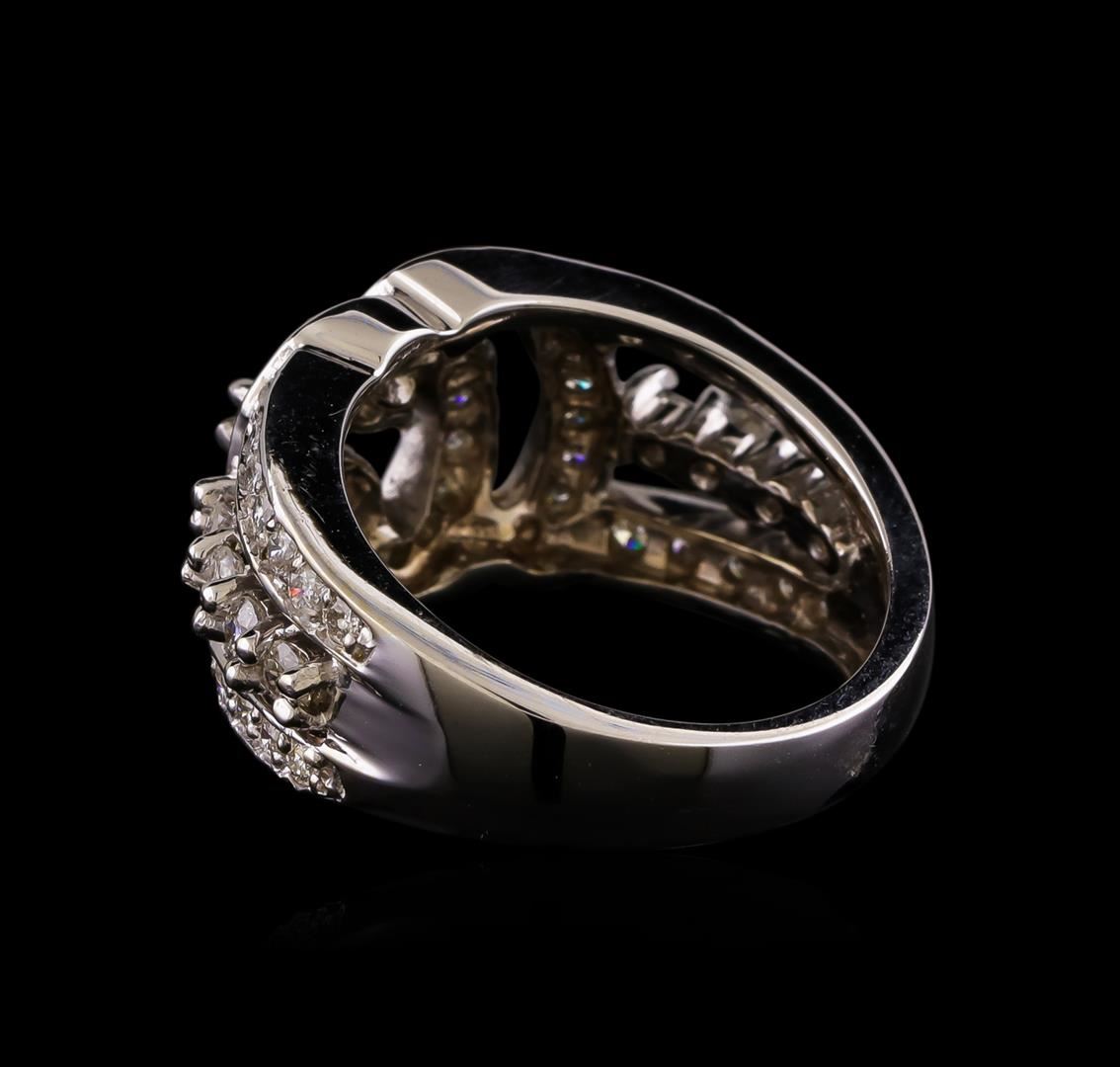 One electronically tested 14KT white gold ladies combination cast & assembled diamond ring with a bright polish finish. Identified with markings of "14K". Condition is new. Containing: Sixty-Three prong set round brilliant cut diamonds, measuring 2.00 - 1.30 x 0.99mm (depth est.) approximate total weight of 63 Stones = 0.80ct. Clarity: SI-2 to I-2. Color: I - J, Cut is Good. All diamonds are graded in the mounting, unless otherwise stated. Total Weight of Diamonds 0.80ct. Total Weight of Ring 7.60 grams. GGL Appraised at $4,010.00.