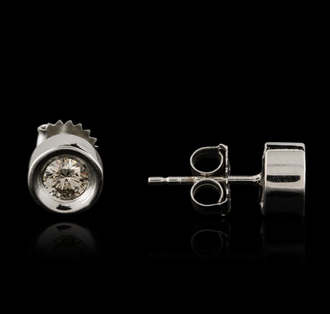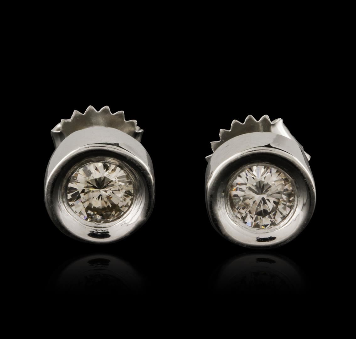 One pair of stud earrings featuring: 14KT white gold weighing 2.84 grams containing two bezel set round diamonds with a total weight of 0.80ct.