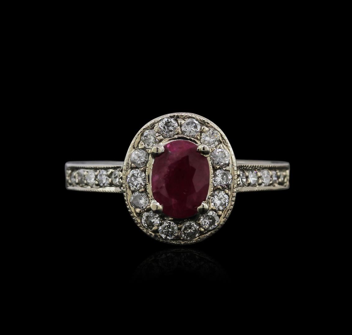 One ring featuring: 14KT white gold weighing 4.93 grams containing one ruby center stone with a total weight of 0.80ct and 24 diamonds with a total weight of 0.45ct.