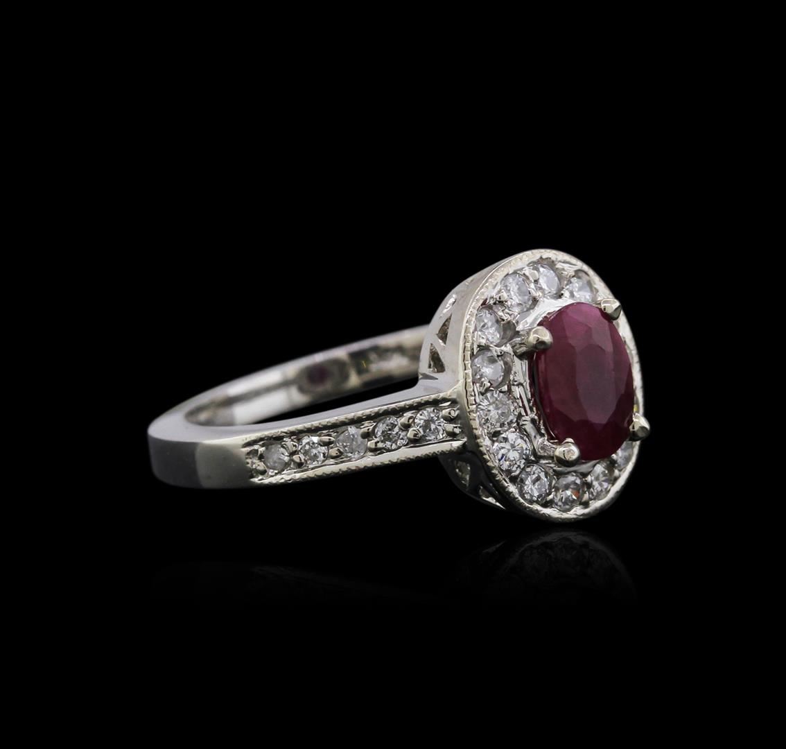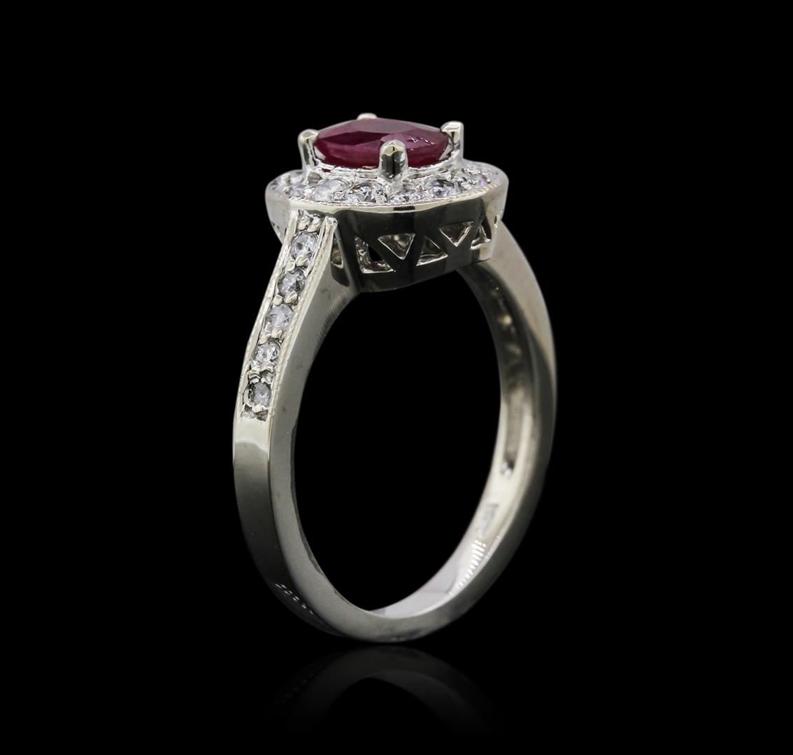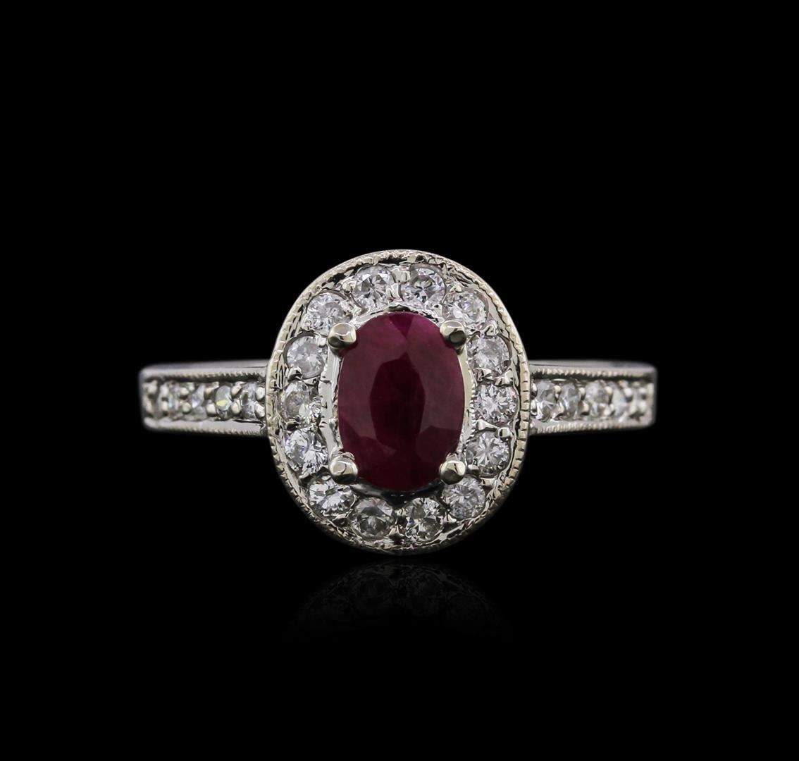 One ring featuring: 14KT white gold weighing 4.93 grams containing one ruby center stone with a total weight of 0.80ct and 24 diamonds with a total weight of 0.45ct.