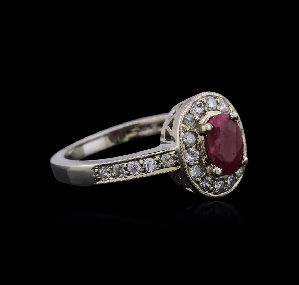 One ring featuring: 14KT white gold weighing 4.93 grams containing one ruby center stone with a total weight of 0.80ct and 24 diamonds with a total weight of 0.45ct.