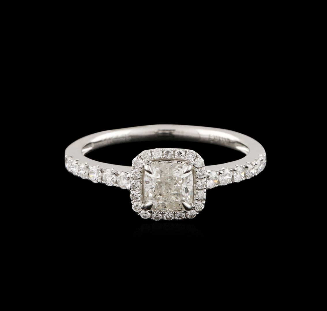 One ring featuring: 14KT white gold weighing 2.30 grams containing one prong set round diamond center with a total weight of 0.46ct and prong set cushion cut diamonds with a total weight of 0.37ct.