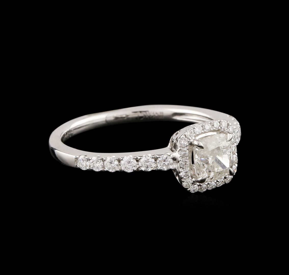 One ring featuring: 14KT white gold weighing 2.30 grams containing one prong set round diamond center with a total weight of 0.46ct and prong set cushion cut diamonds with a total weight of 0.37ct.