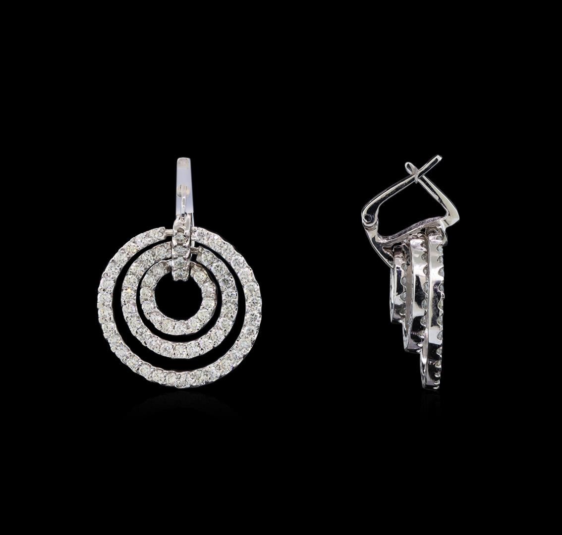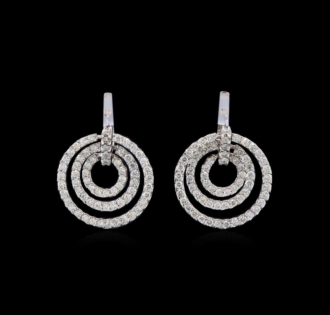One pair electronically tested 14KT white gold ladies cast diamond earrings with friction posts with a bright polish finish. Identified with markings of "14K". Condition is new. Containing: One Hundred Thirty-Two prong set round brilliant cut diamonds, measuring 1.80 - 1.80 x 1.08mm (depth est.) approximate total weight of 132 Stones = 0.85ct. Clarity: SI-1 to SI-2. Color: H - I, Cut is Good. All diamonds are graded in the mounting, unless otherwise stated. Total Weight of Diamonds 0.85ct. Total Weight of Earrings 10.30 grams. GGL Appraised at $5,980.00.