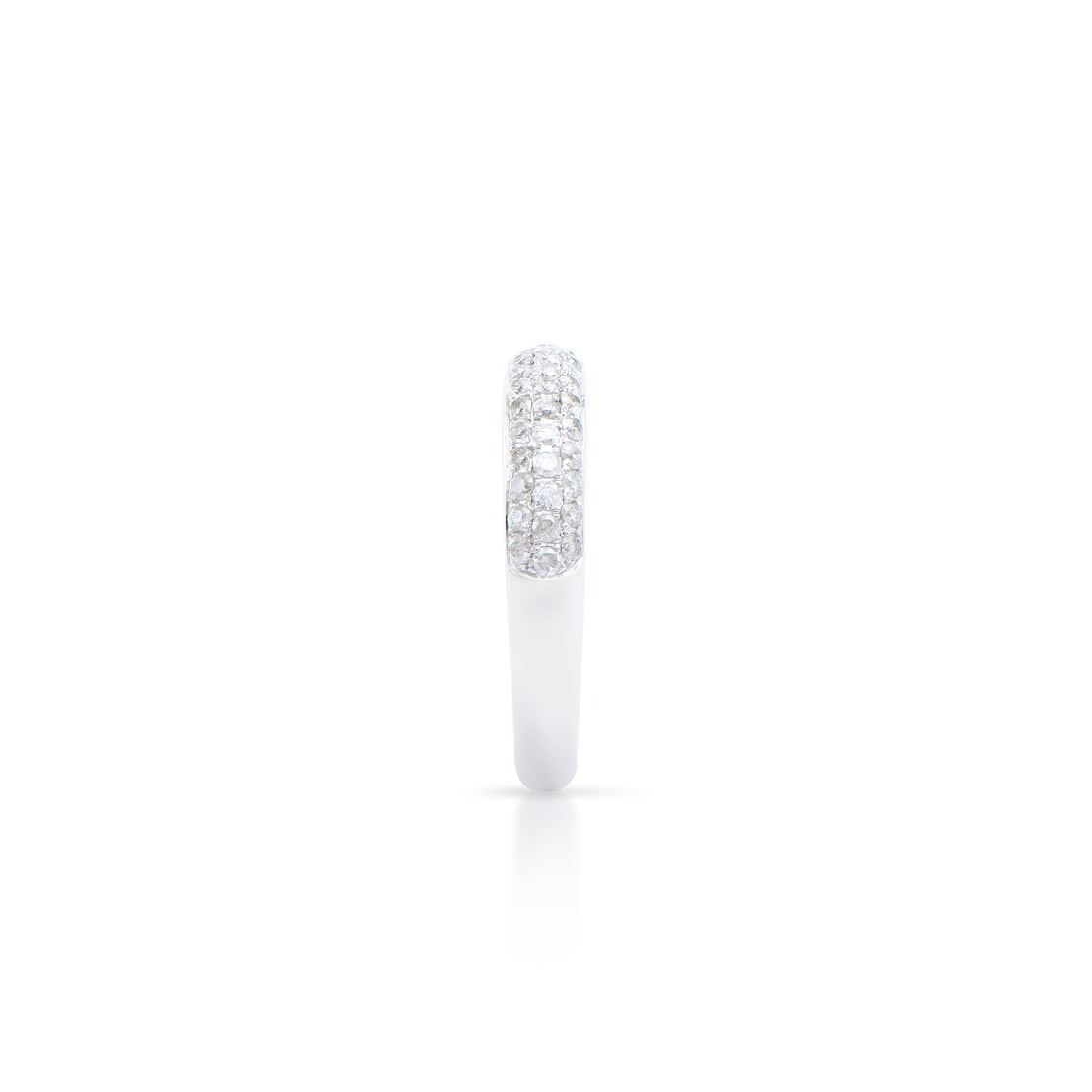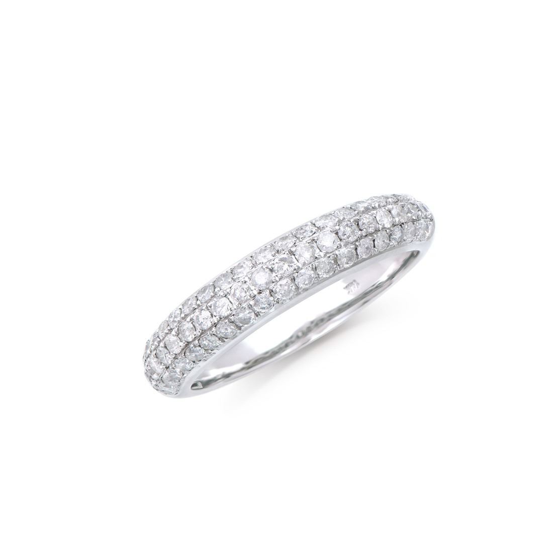 (61) Round Diamonds with a total weight of 0.85cts with a color of H-I and clarity of I2-I3. Total weight of this ring is 3.10 grams. Ring size is 7.5.