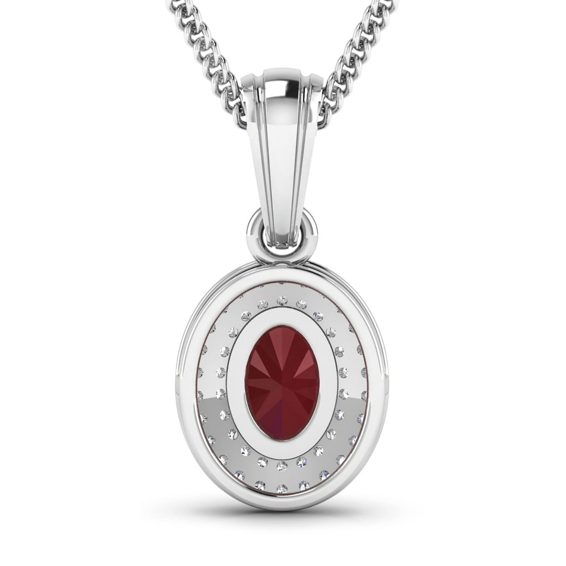 Ruby (AA) Oval 7x5mm - 1Pc + White Diamond F/C Round 0.90mm - 48Pcs (I1-I2/I color) Total weight of gemstone is 0.85cts. Total Diamond weight is 0.16cts. Total weight of this pendant is 1.45 grams.