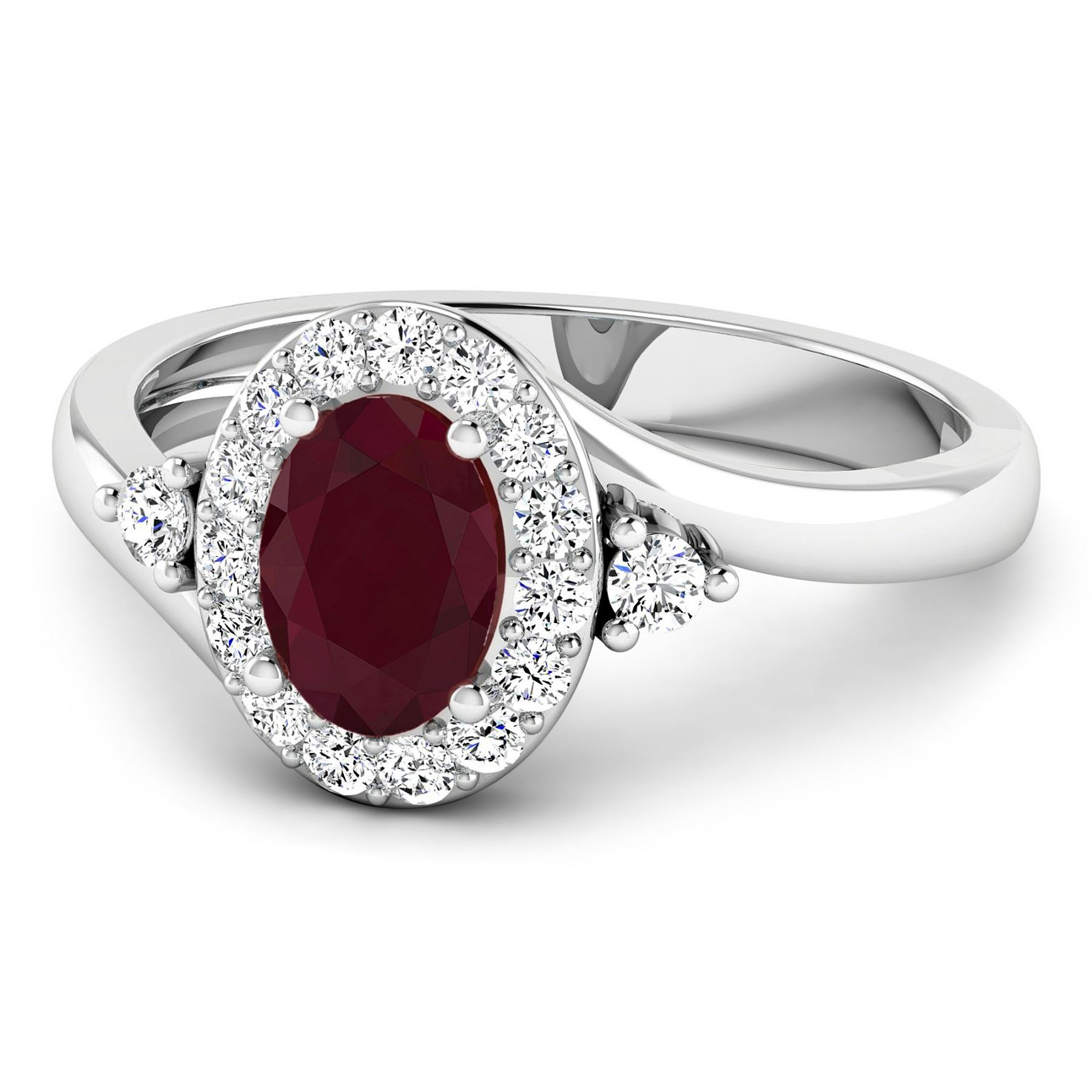 Ruby (AA) Oval 7x5mm - 1Pc + White Diamond F/C Round 2.00mm - 2Pcs + White Diamond F/C Round 1.50mm - 15Pcs ( I1-I2/I color ) Total weight of gemstone is 0.85cts. Total Diamond weight is 0.27cts. Total weight of this ring is 2.63 grams. Ring size 7.