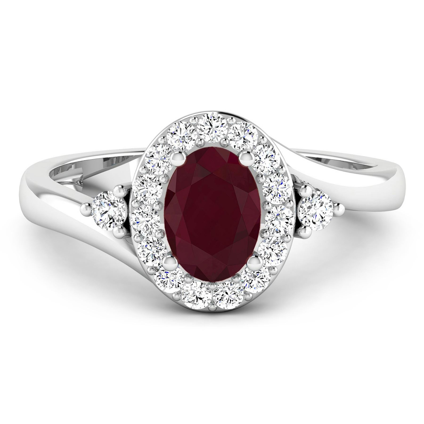 Ruby (AA) Oval 7x5mm - 1Pc + White Diamond F/C Round 2.00mm - 2Pcs + White Diamond F/C Round 1.50mm - 15Pcs ( I1-I2/I color ) Total weight of gemstone is 0.85cts. Total Diamond weight is 0.27cts. Total weight of this ring is 2.63 grams. Ring size 7.