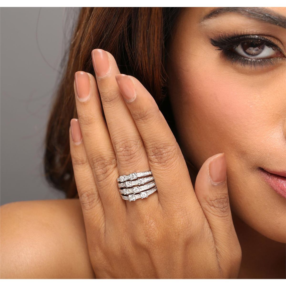 One electronically tested 14KT white gold ladies combination cast & assembled diamond ring with a split shank with a bright polish finish. Identified with markings of 14K. Condition is new. Containing: Sixty-Five prong set round brilliant cut diamonds, measuring 1.00 - 1.00 x 0.60mm (depth est.) approximate total weight of 65 Stones = 0.23ct. Clarity: I-1 to I-2. Color: I - J, Cut is Good. Eight prong set round brilliant cut diamonds, measuring 2.80 - 2.80 x 1.68mm (depth est.) approximate total weight of 8 Stones = 0.64ct. Clarity: I-1 to I-2. Color: H - I, Cut is Good. All diamonds are graded in the mounting, unless otherwise stated. Total Weight of Diamonds 0.88ct. Total Weight of Ring 9.00 grams. GGL Appraised at $5,155.00.