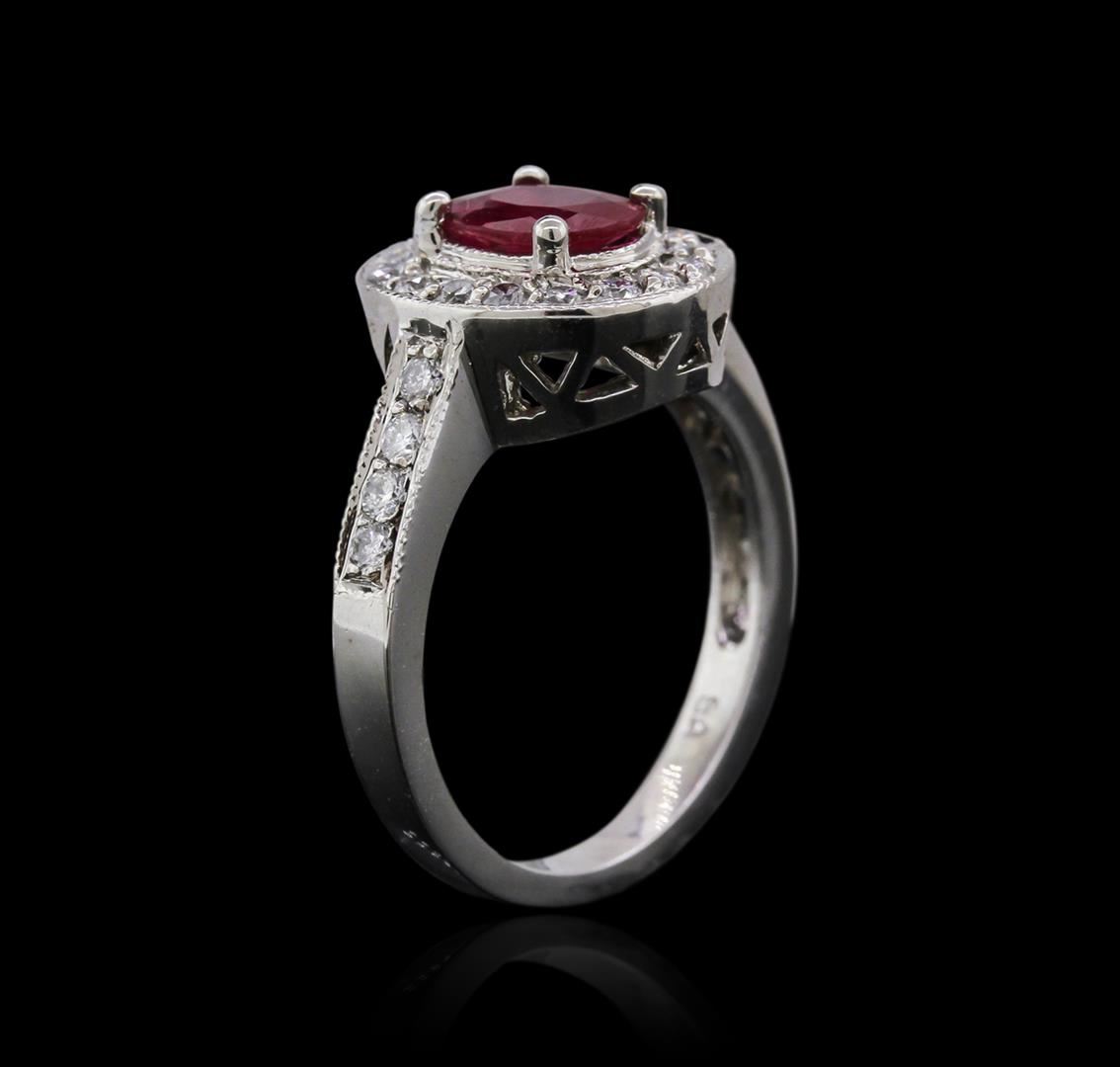 One ring featuring: 14KT white gold weighing 6.00 grams containing one ruby center stone with a total weight of 0.89ct and 25 diamonds with a total weight of 0.54ct.