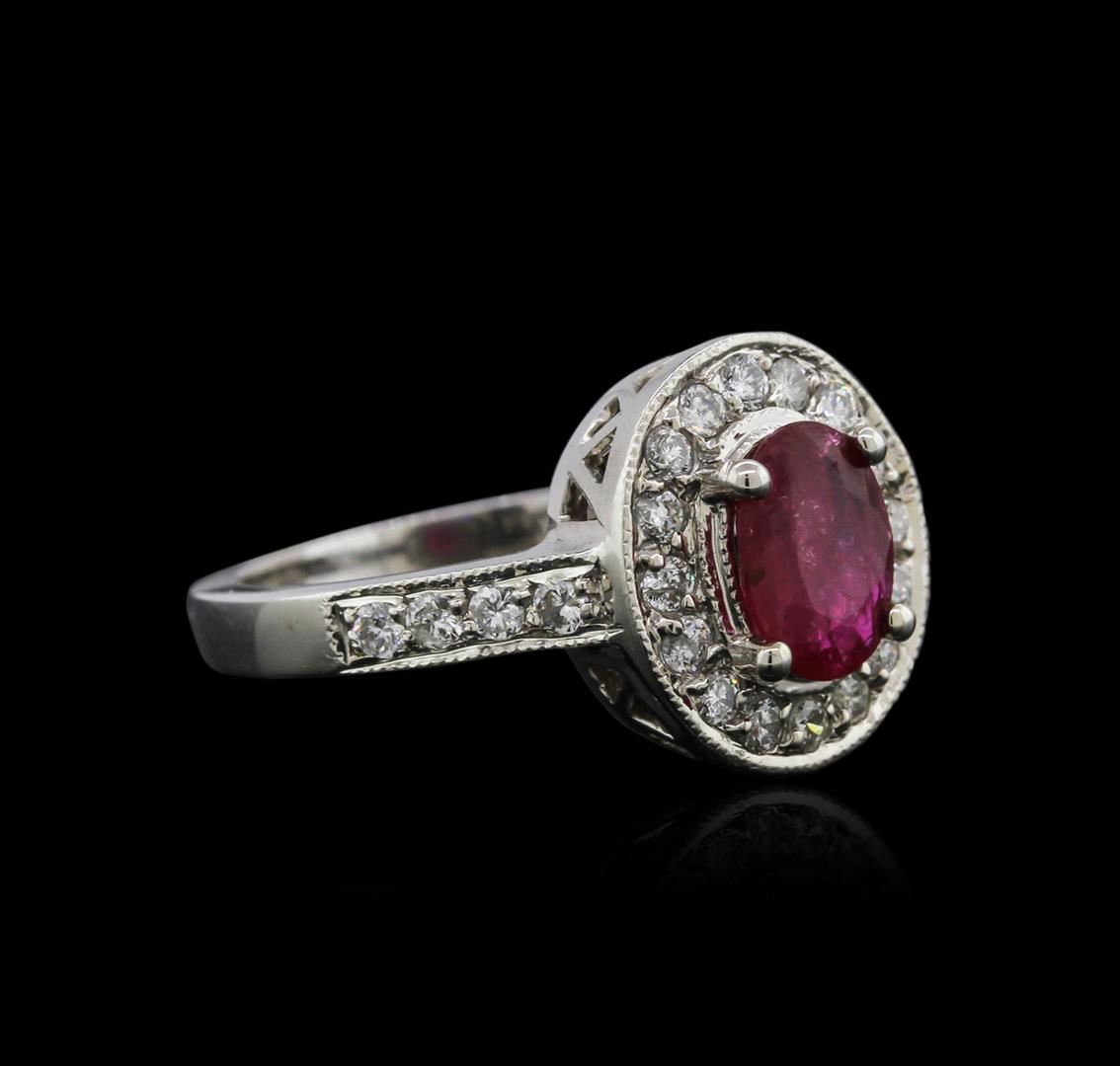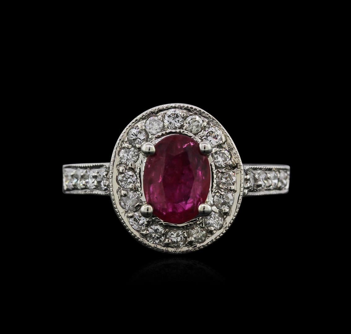 One ring featuring: 14KT white gold weighing 6.00 grams containing one ruby center stone with a total weight of 0.89ct and 25 diamonds with a total weight of 0.54ct.