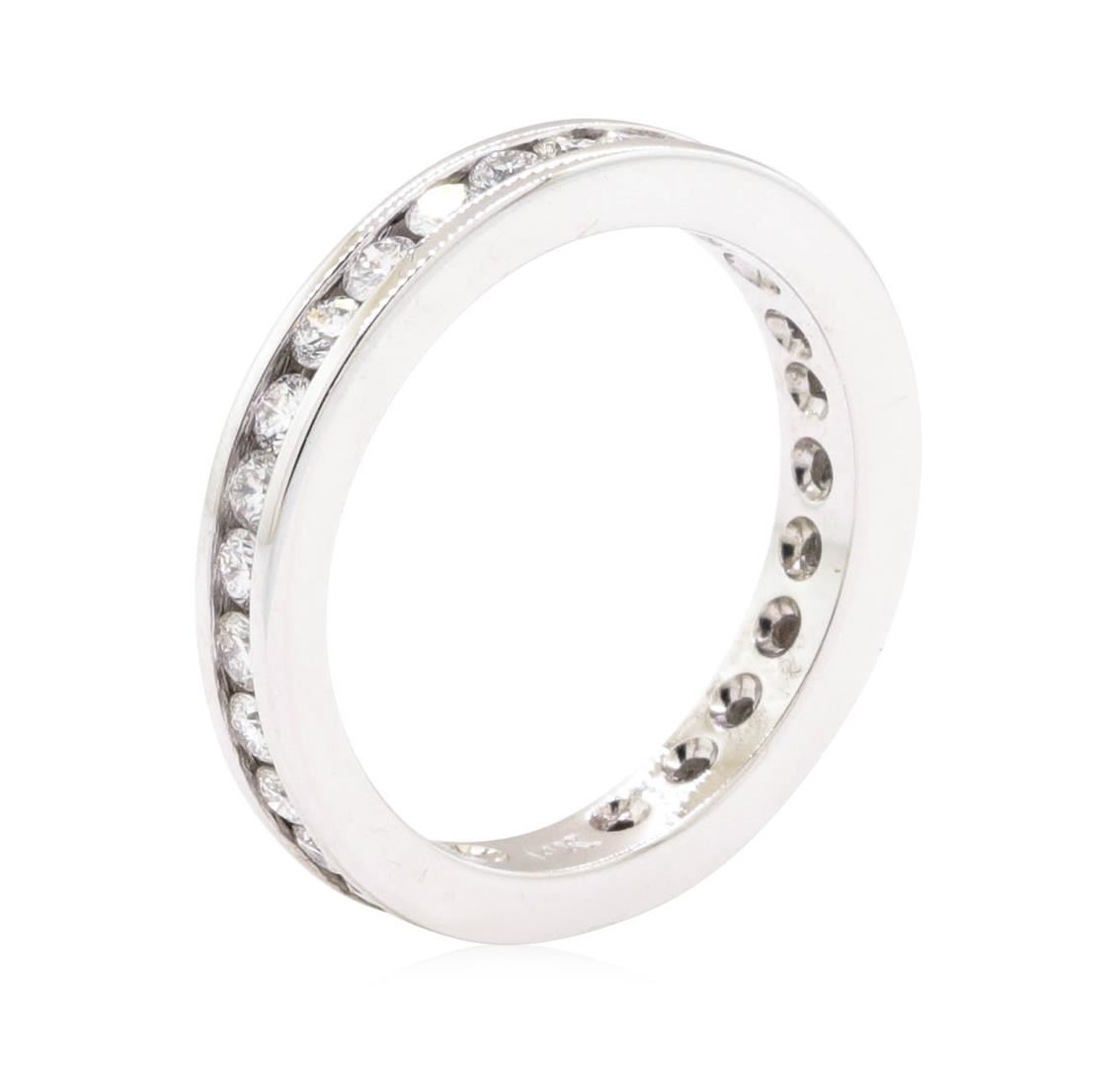One eternity band featuring: 14KT white gold weighing 2.5 grams containing diamonds weighing 0.90ctw. The ring is a size 4.