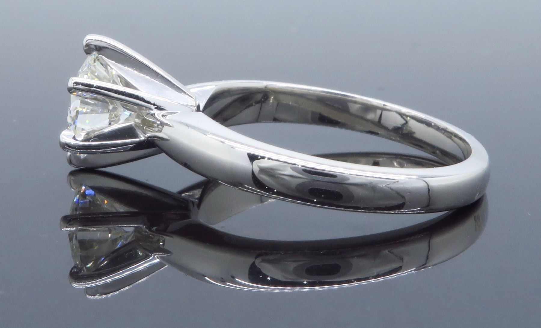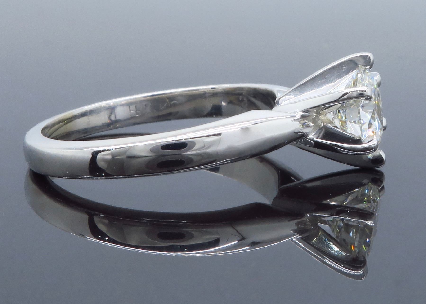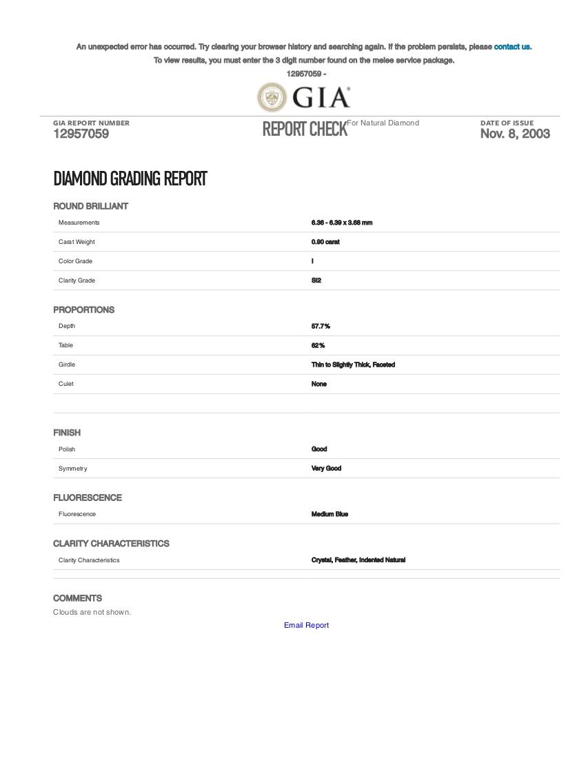 One 14KT White Gold 0.90ct GIA Cert Diamond Ring. (1) GIA Certified round Diamond with a total weight of 0.90cts with a color of I and clarity of SI-2. Total weight of this ring is 3.4 grams. Ring size is 5.25.