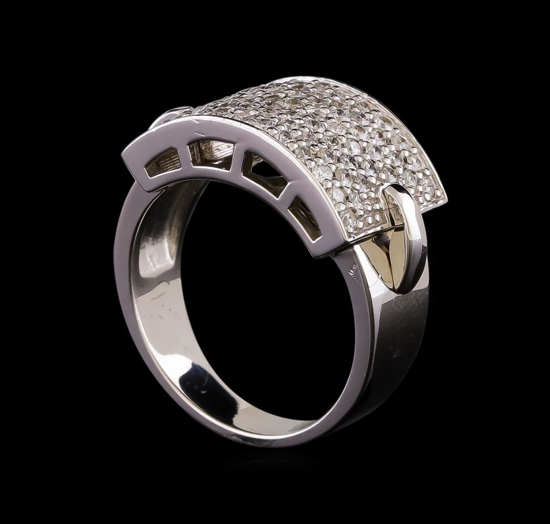 One electronically tested 14KT white gold ladies combination cast & assembled diamond ring with a tapered shank with a bright polish finish. Identified with markings of "14K". Condition is new. Containing: Seventy-Five prong set round brilliant cut diamonds, measuring 1.50 - 1.50 x 0.90mm (depth est.) approximate total weight of 75 Stones = 0.92ct. Clarity: SI-2 to I-1. Color: H - I, Cut is Good. All diamonds are graded in the mounting, unless otherwise stated. Total Weight of Diamonds 0.92ct. Total Weight of Ring 8.10 grams. GGL Appraised at $5,125.00.
