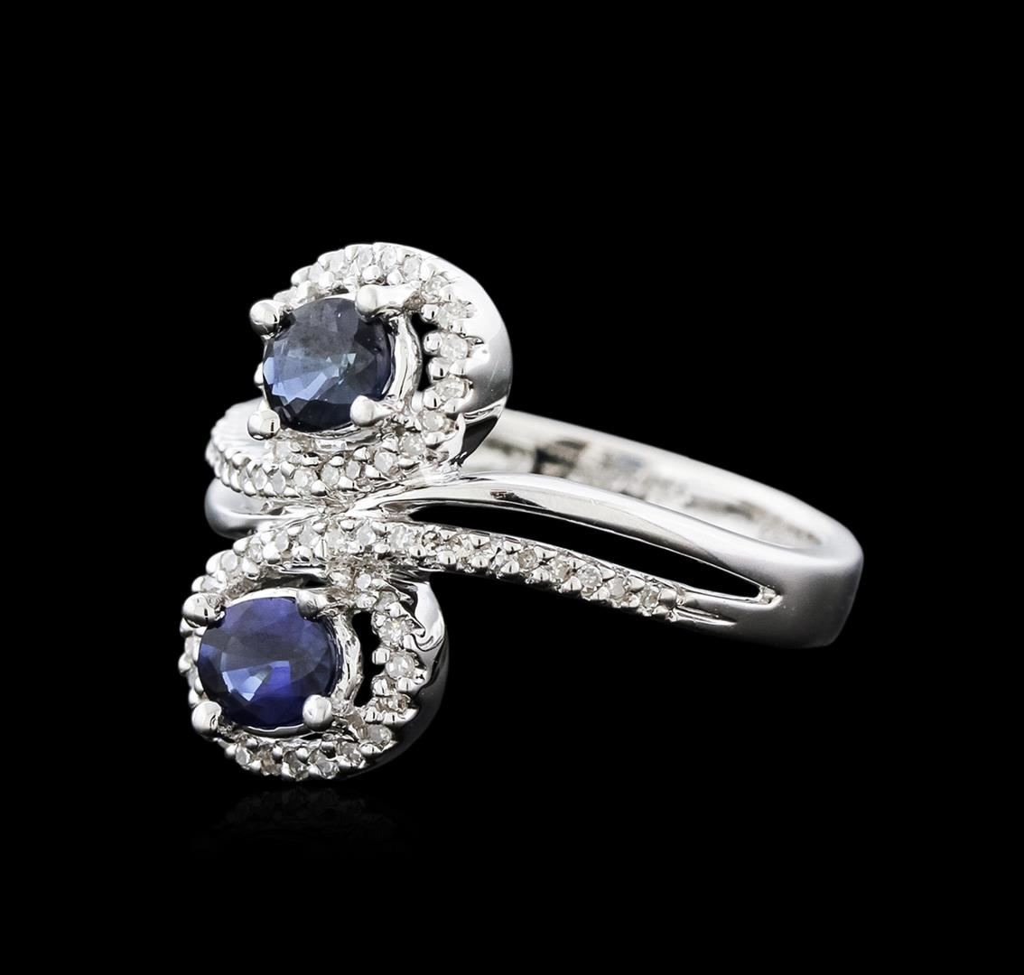 One ring featuring: 14KT white gold weighing 5.37 grams containing two oval cut sapphires weighing a total of 0.92ct and round cut diamonds weighing a total of 0.24ct.