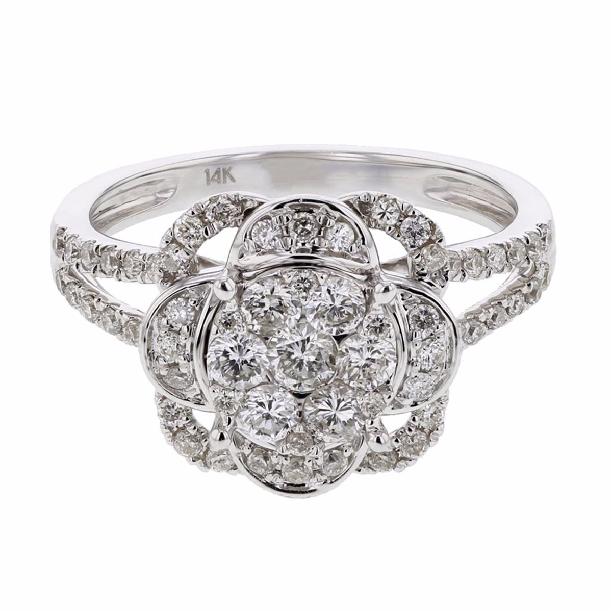 One 14KT White Gold 0.92ctw Diamond Ring. (65) Diamonds with a total weight of 0.92cts. The total weight of this ring is 4.5 grams.