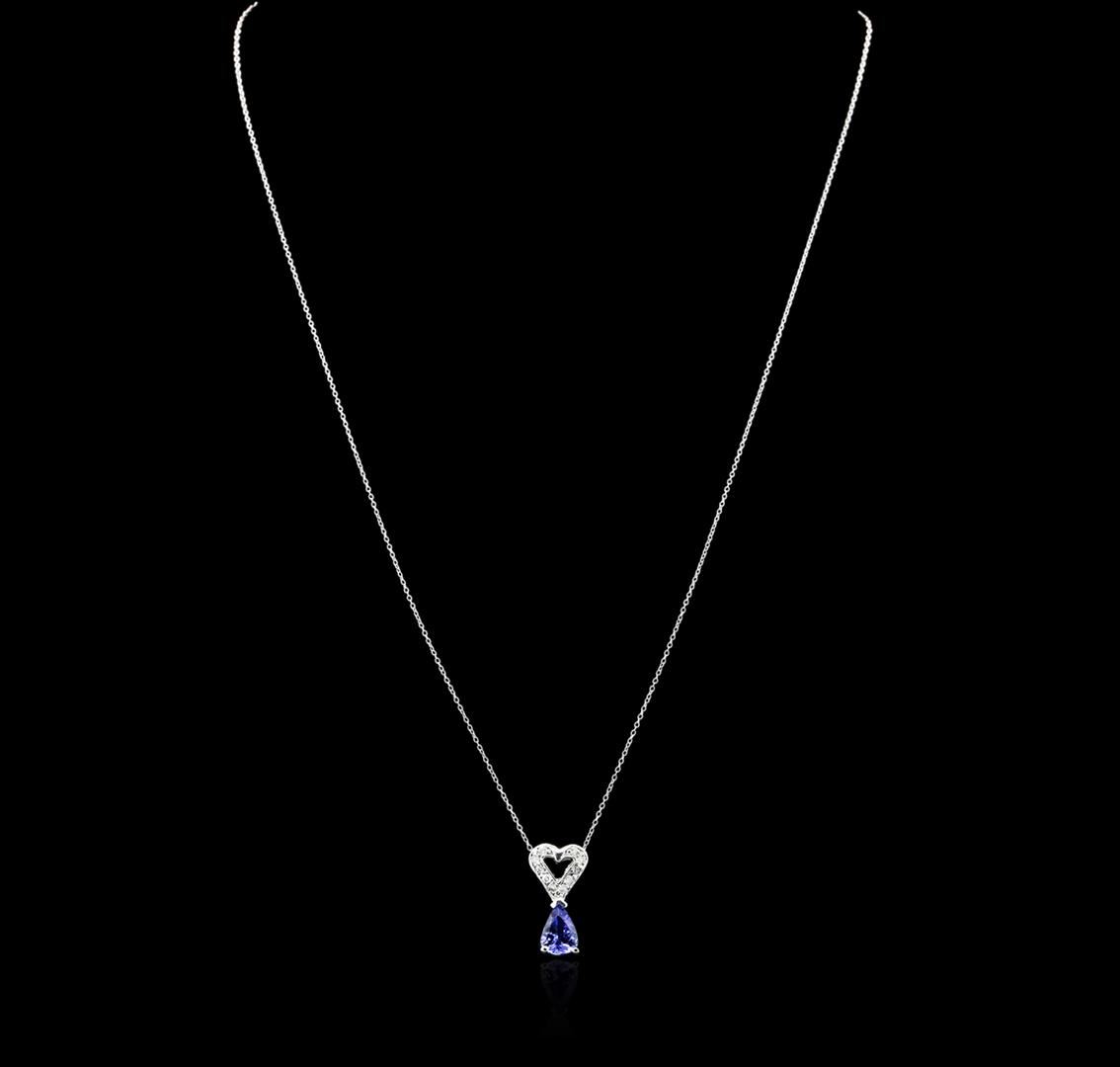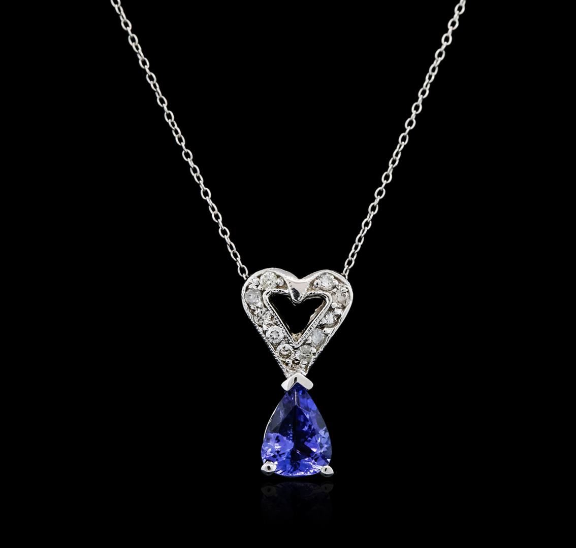 One pendant with chain featuring: 14KT white gold weighing 1.80 grams containing one tanzanite with a total weight of 0.93ct and round diamonds with a total weight of 0.13cts.