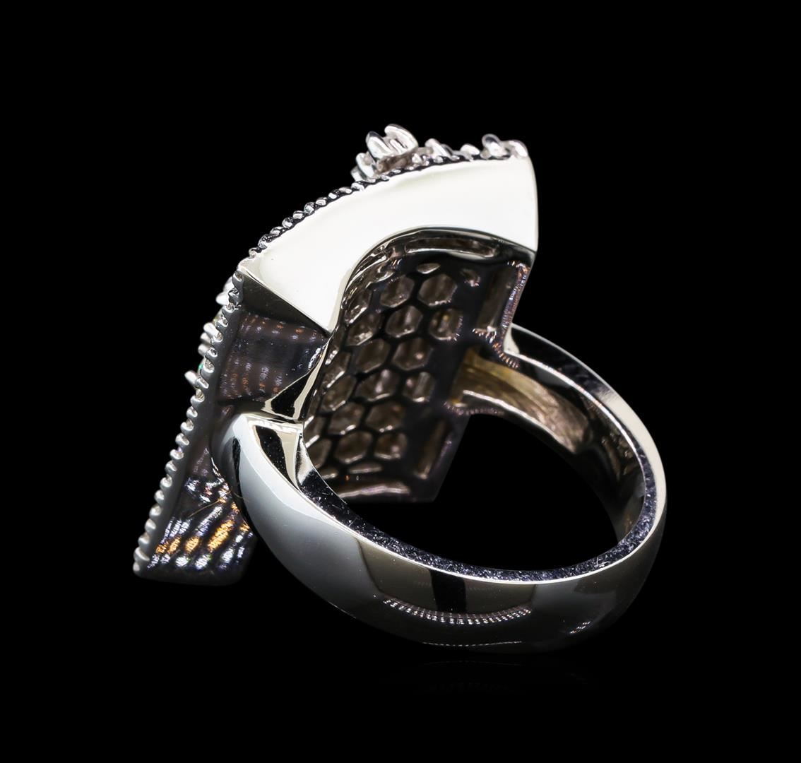 One electronically tested 14KT white gold ladies cast diamond ring with a bright polish finish. Identified with markings of "K14". Condition is new. Containing: Ninety-Four prong set round brilliant cut diamonds, measuring 1.10 - 1.10 x 0.66mm (depth est.) approximate total weight of 94 Stones = 0.45ct. Clarity: SI-1 to SI-2. Color: H - I, Cut is Good. Twenty-Four prong set round brilliant cut diamonds, measuring 1.80 - 1.80 x 1.08mm (depth est.) approximate total weight of 24 Stones = 0.51ct. Clarity: SI-1 to SI-2. Color: H - I, Cut is Good. All diamonds are graded in the mounting, unless otherwise stated. Total Weight of Diamonds 0.96ct. Total Weight of Ring 14.10 grams. GGL Appraised at $6,610.00.