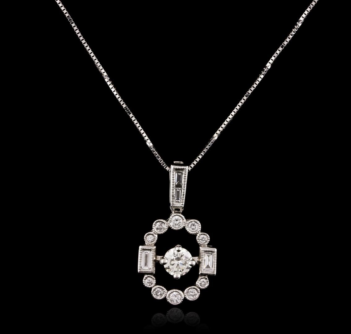 One pendant with chain featuring: 14KT white gold containing diamonds weighing a total of 1.00ct.