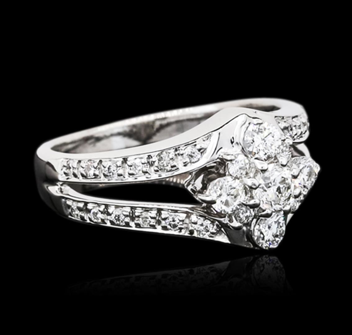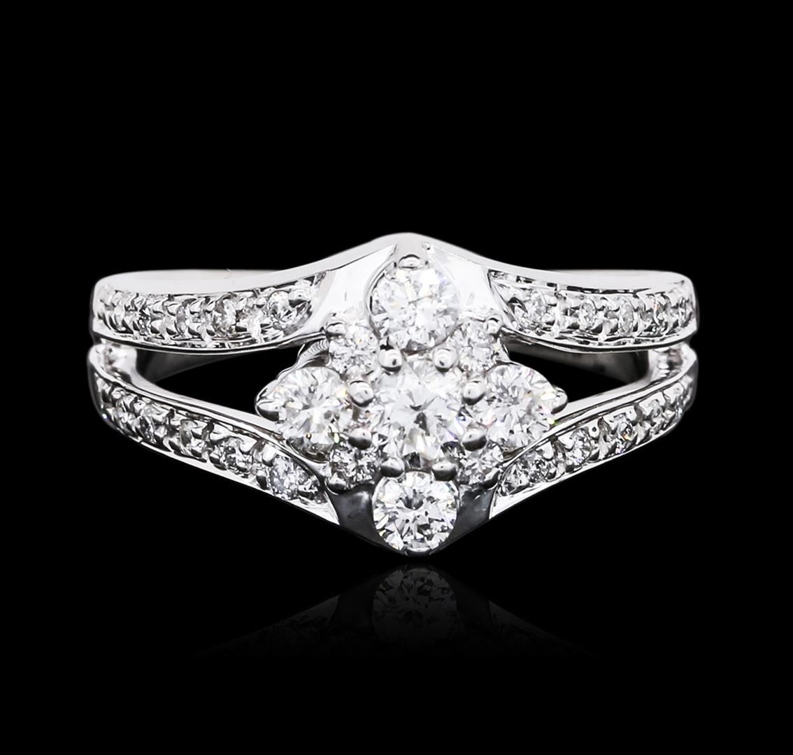 One ring featuring: 14KT white gold weighing 6.30 grams containing round diamonds with a total weight of 1.00cts.