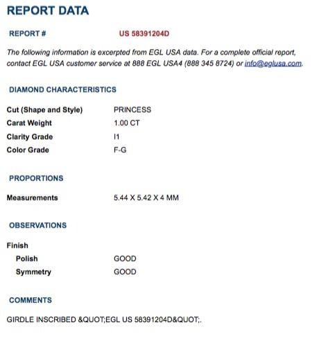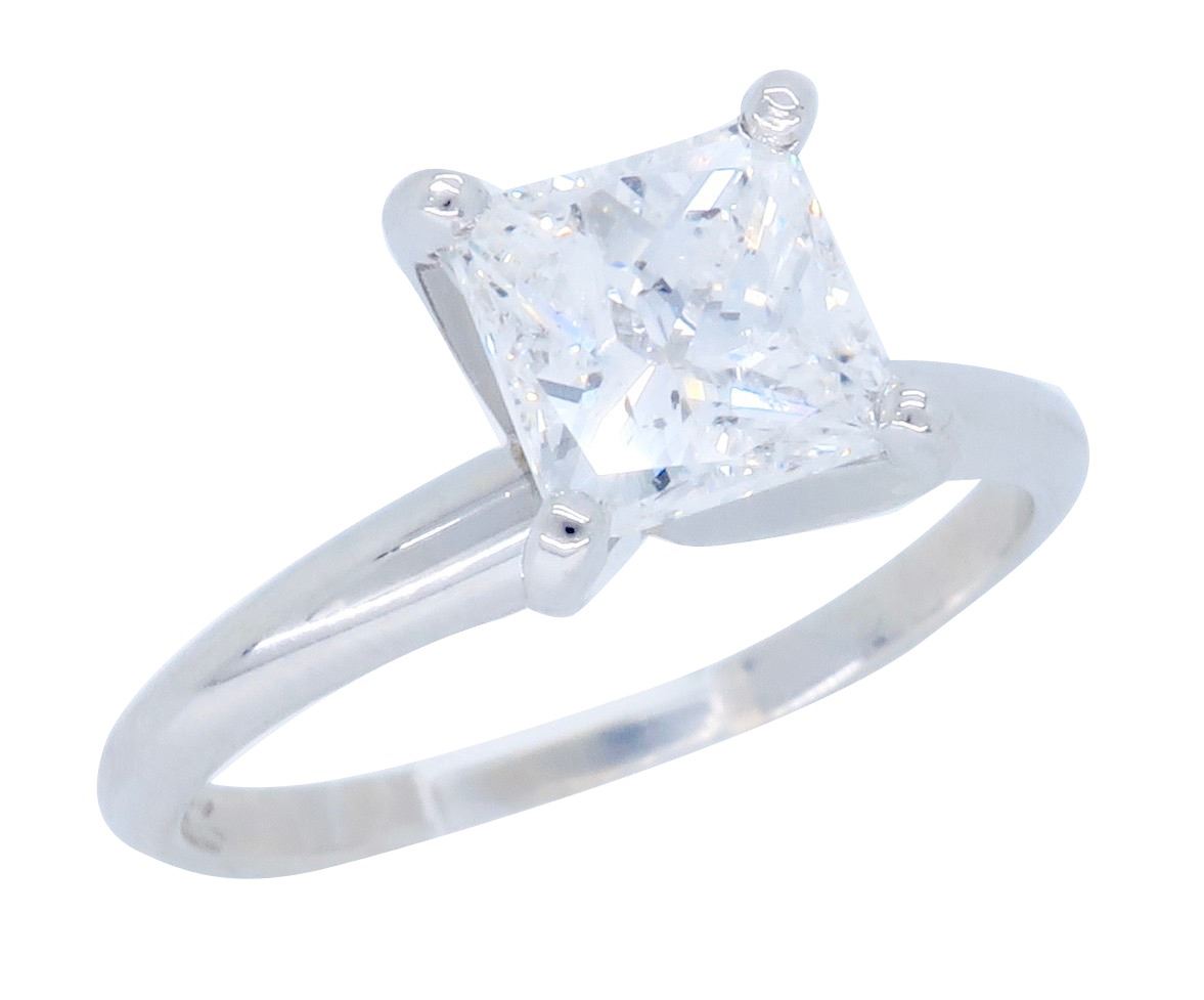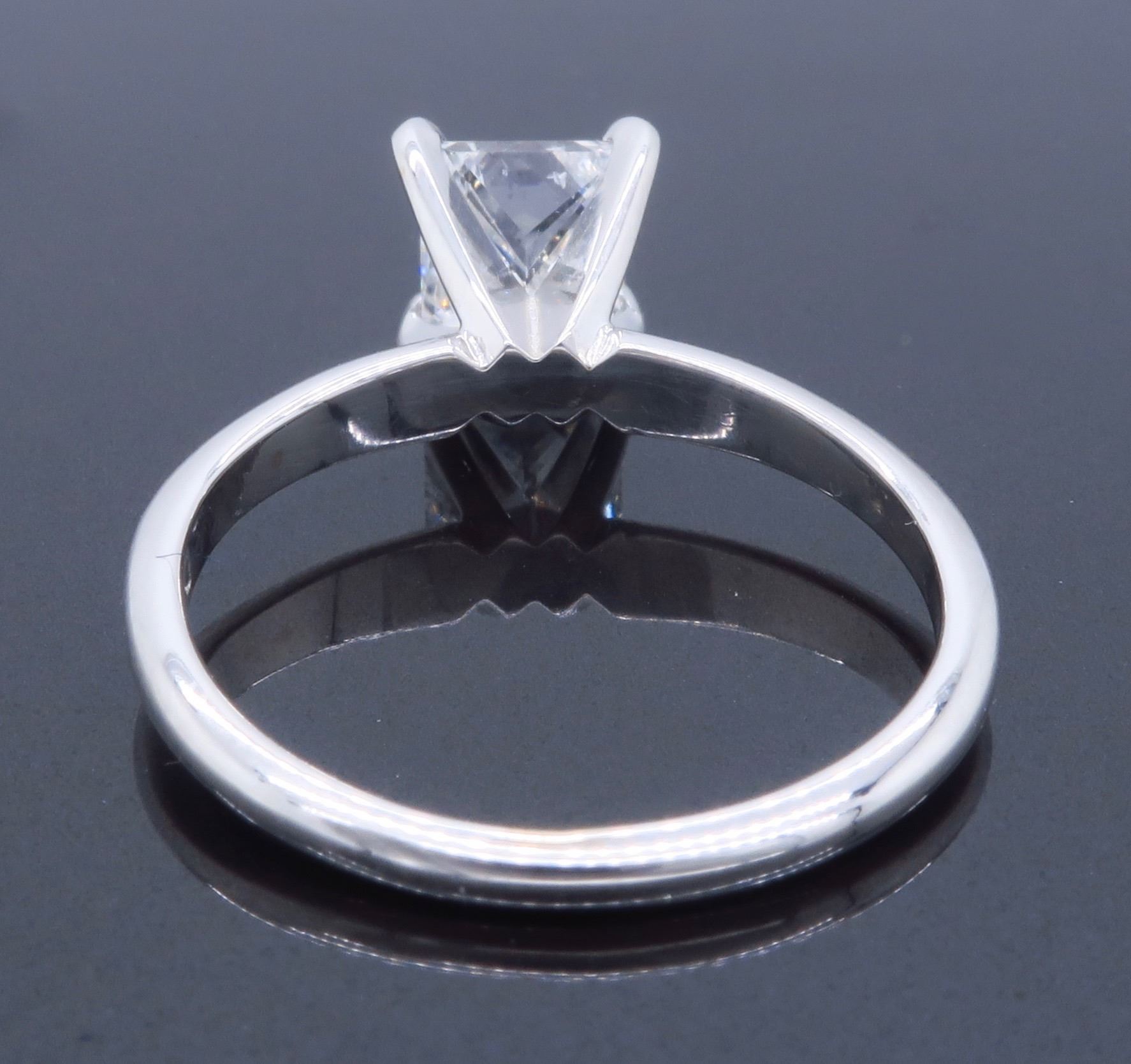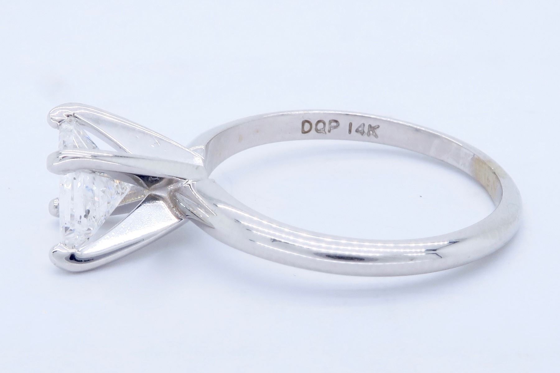One 14KT White Gold 1.00ct EGL Cert Princess Cut Diamond Ring. (1) Princess cut Diamond with a total weight of 1.00cts with a color of F-G and clarity of I-1. Total weight of this ring is 2.6 grams. Ring size is 5.5.