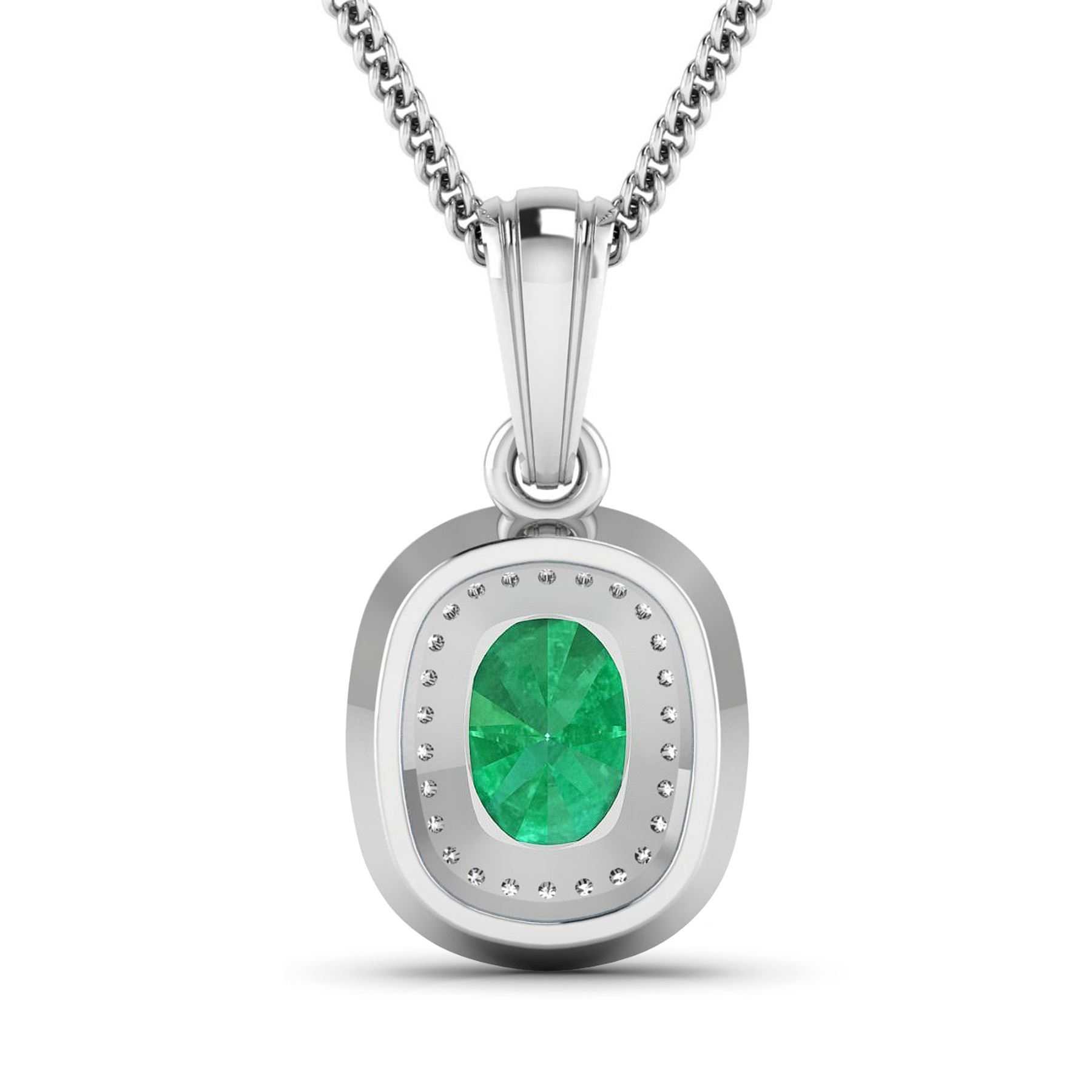 (1) Oval Zambian Emerald stone with a total weight of 1.00ct. (58) round Diamonds with a total weight of 0.26cts with a color of (i) and a clarity of i1-i2. Total weight of this pendant with chain is 2.89 grams. 16 inch chain.