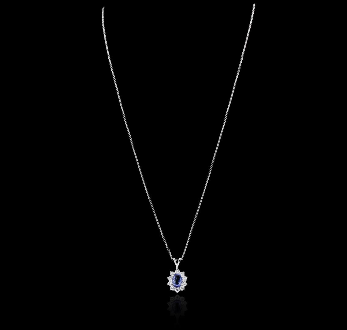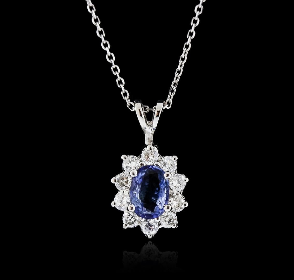 One pendant with chain featuring: 14KT white gold weighing 2.00 grams containing one tanzanite with a total weight of 1.00ct and diamonds with a total weight of 0.47ct.