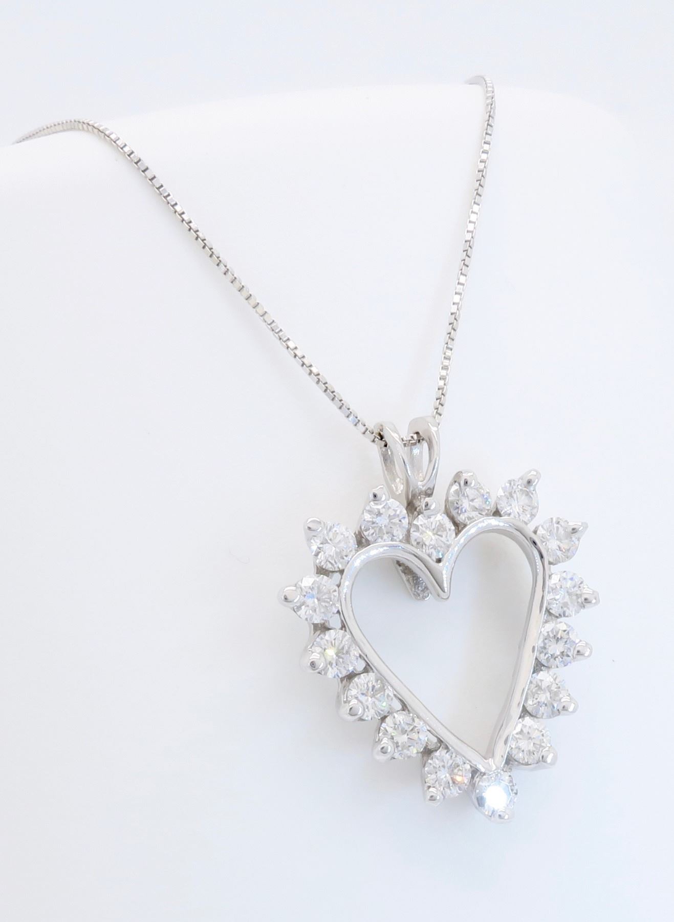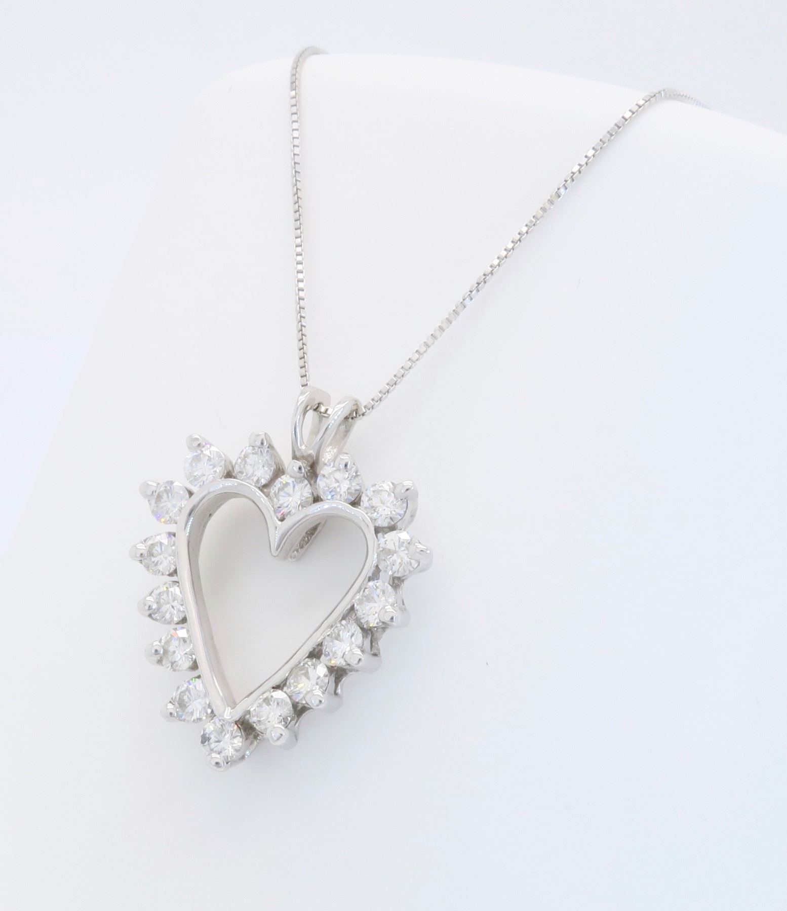 One 14KT White Gold 1.00ctw Diamond Pendant with Chain. Round Diamonds with a total weight of 1.00cts with a color of G-H and clarity of SI-1. 18 inch chain. Total weight of this pendant with chain is 3.9 grams.