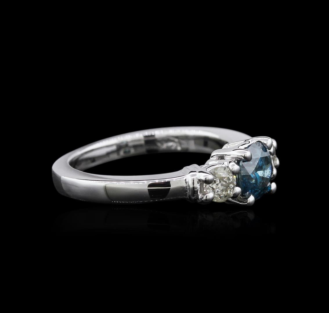 One ring featuring: 14KT white gold weighing 4.00 grams containing one blue diamond center stone with a total weight of 0.64ct and two side diamonds with a total weight of 0.37ct.