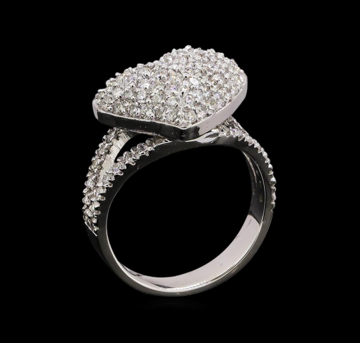One electronically tested 14KT white gold ladies cast diamond ring with a bright polish finish. Identified with markings of "14K". Condition is new. Containing: One Hundred One bead set round brilliant cut diamonds, measuring 1.50 - 1.30 x 0.84mm (depth est.) approximate total weight of 101 Stones = 1.01ct. Clarity: SI-1 to SI-2. Color: H - I, Cut is Good. All diamonds are graded in the mounting, unless otherwise stated. Total Weight of Diamonds 1.01ct. Total Weight of Ring 6.50 grams. GGL Appraised.