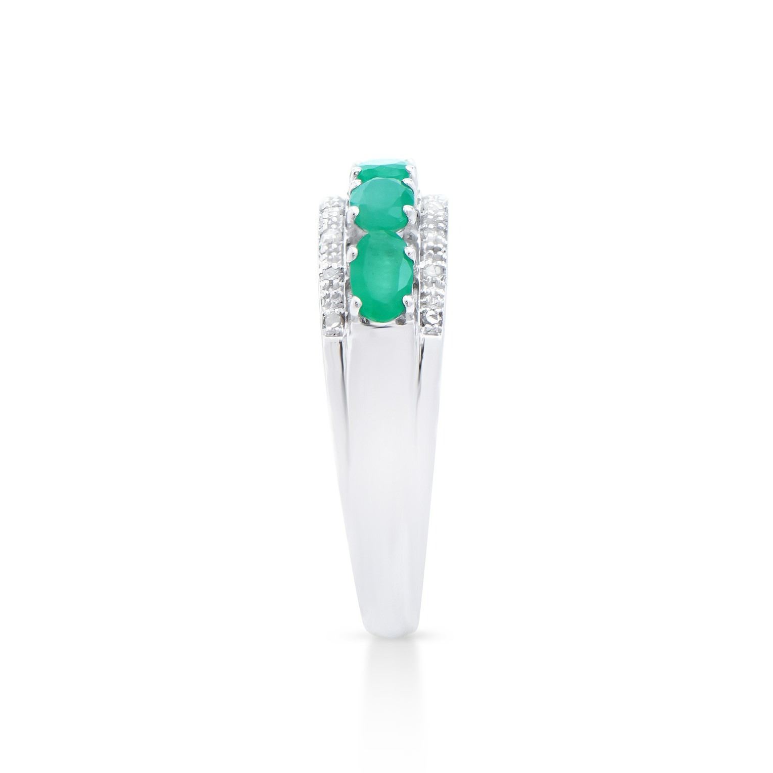 (4) Emeralds with a total weight of 1.01cts. (14) round Diamonds with a total weight of 0.07cts with a color of H-I and clarity of I2-I3. Total weight of the ring is 3.80 grams. Ring size 7.5.