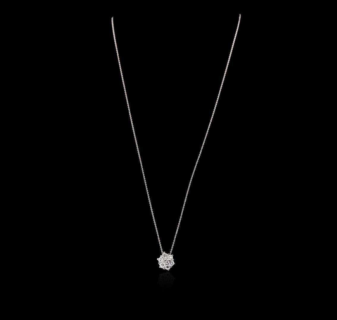 One pendant with chain featuring: 14KT white gold weighing 2.60 grams containing round diamonds weighing a total of 1.04ct.