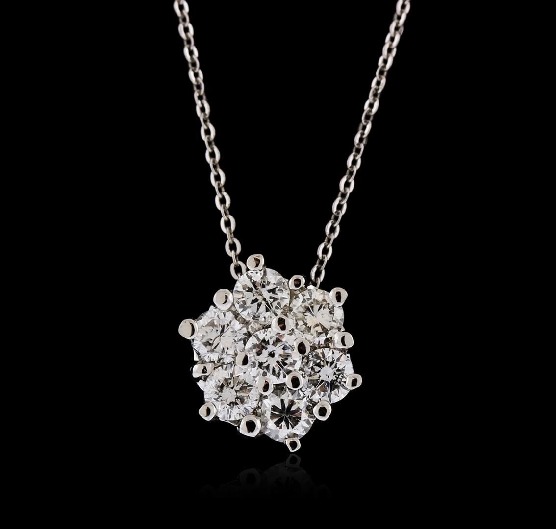 One pendant with chain featuring: 14KT white gold weighing 2.60 grams containing round diamonds weighing a total of 1.04ct.