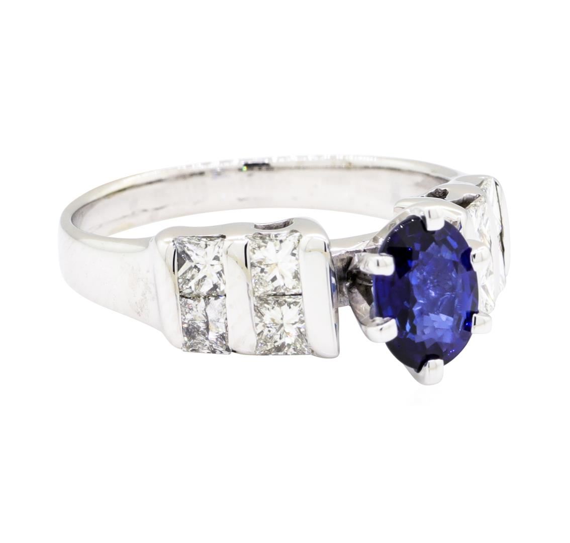 One ring featuring: 14KT white gold weighing 4.5 grams containing one sapphire weighing 1.04ct and diamonds weighing 0.80ctw. The ring is a size 6.5.