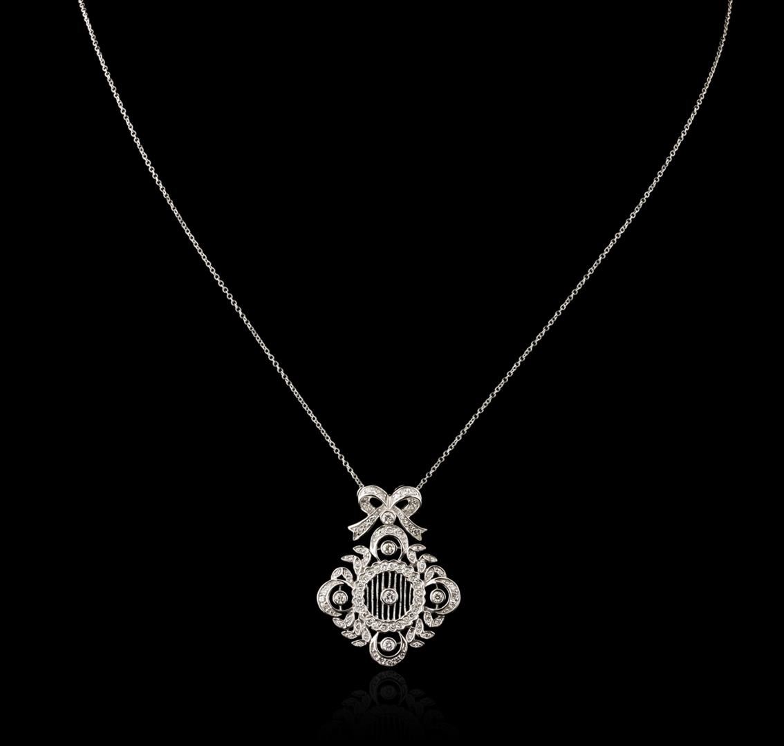 One pendant with chain featuring: 14KT white gold weighing 7.92 grams containing pave and bezel set diamonds with a total weight of 1.05ct.