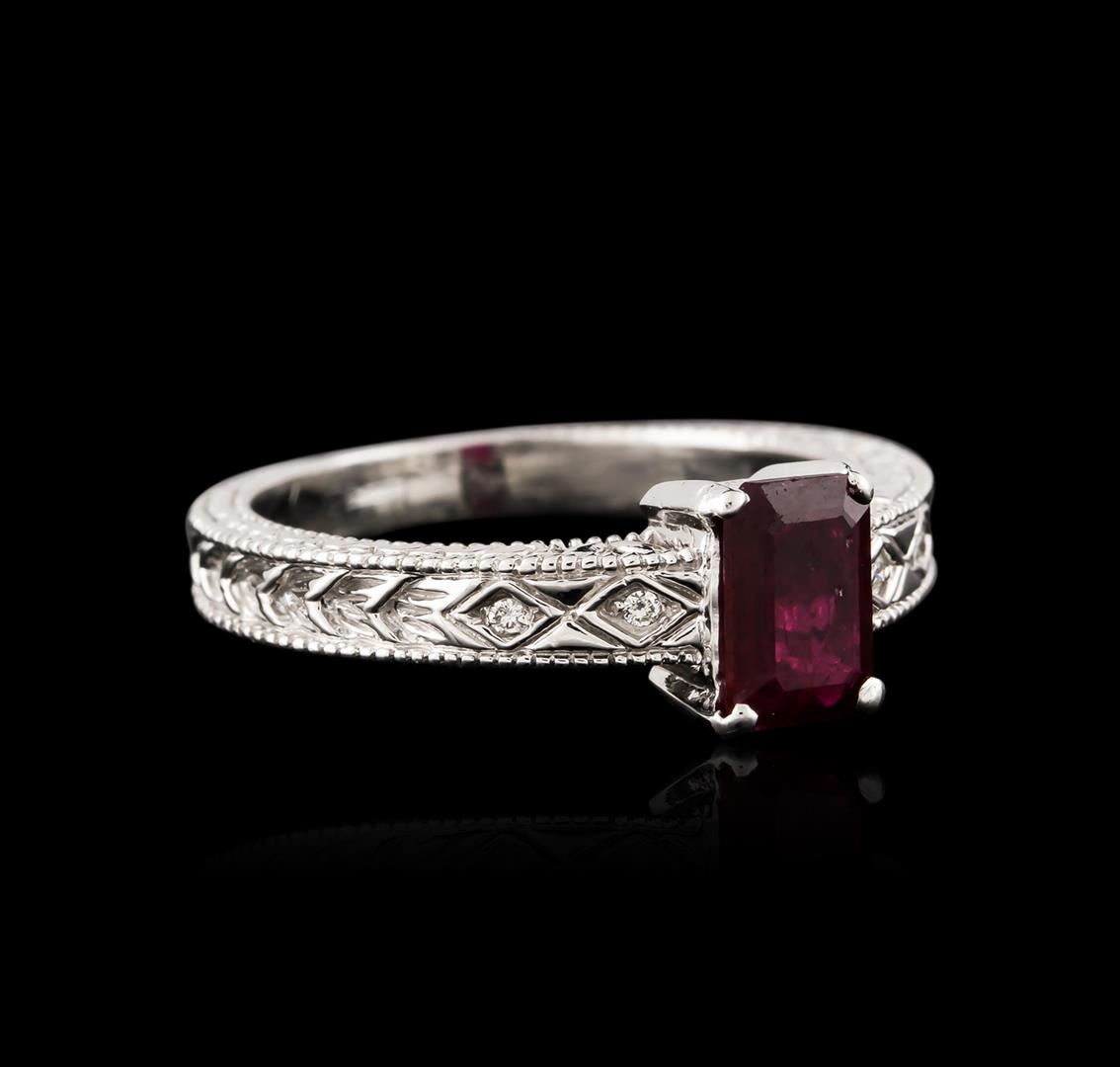 One ring featuring: 14KT white gold weighing 4.28 grams containing one ruby center weighing 1.05ct and diamonds weighing a total of 0.05ct.