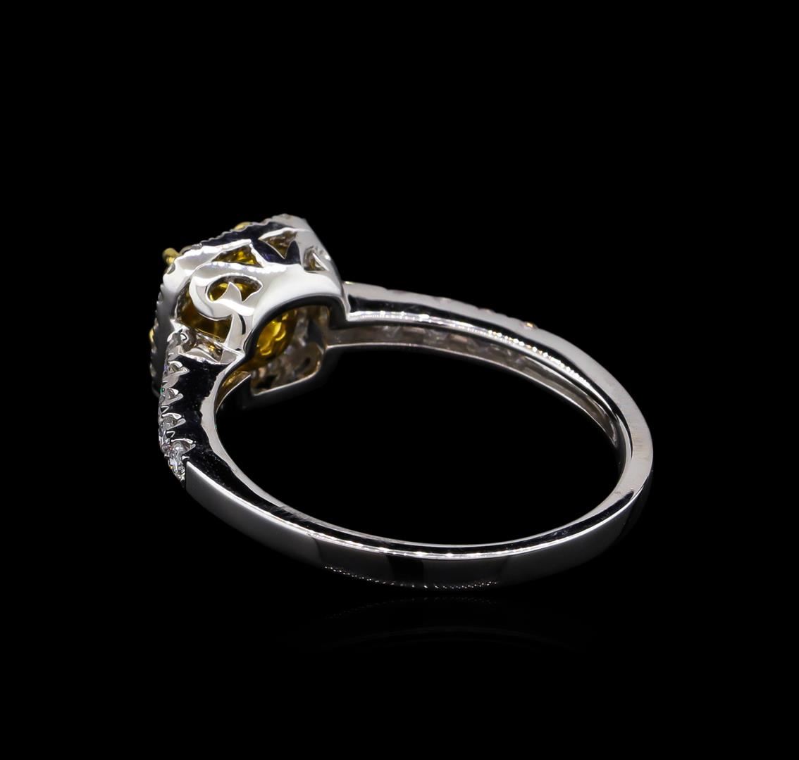 One electronically tested 14KT white gold ladies cast diamond unity ring. Condition is new, good workmanship. The featured diamond is set within a diamond bezel supported by diamond set shoulders, completed by a two millimeter wide band. Bright polish finish with yellow gold accents. Trademark is DAYANII. Identified with markings of "14K 585". Containing: One prong set cushion cut diamond, measuring 5.10 x 5.05 x 3.92mm (depth est.), 3.00% GTCF approximate weight of 1.05ct with a faint fluorescence. Graded in the setting. Clarity SI-1 Depth 77.6%Table 73.3% Ten prong set round brilliant cut diamonds, measuring 1.80 - 1.70 x 1.05mm (depth est.) approximate total weight of 10 Stones = 0.29ct. Graded in the setting. Clarity SI-1 to SI-2 Color G - I Twenty-Two prong set round brilliant cut diamonds, measuring 1.10 - 1.00 x 0.63mm (depth est.) approximate total weight of 22 Stones = 0.19ct. Graded in the setting. Clarity SI-1 to SI-2 Color G - I Total Weight of Diamonds 1.53ct. Total Weight of Ring 2.90 grams. AIG Appraised at $9,875.00.