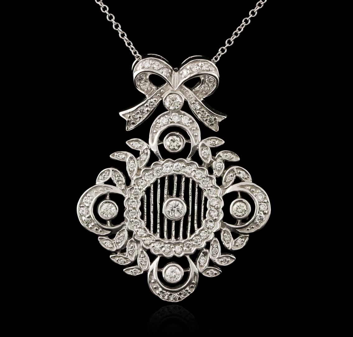 One pendant with chain featuring: 14KT white gold weighing 7.92 grams containing pave and bezel set diamonds with a total weight of 1.05ct.